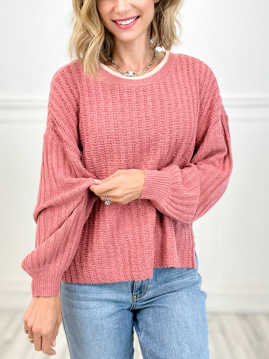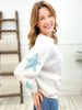 Long Sleeve Sweater with Knit Bows and Pearl Accents