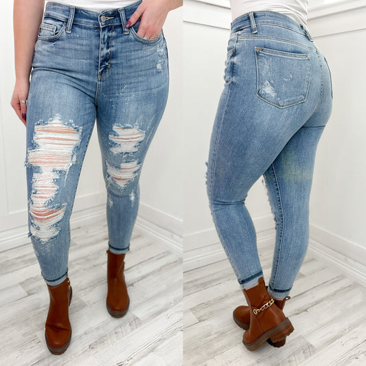 Judy Blue "KENNEDY" Mid Rise Tummy Control Distressed Skinny Denim Jeans