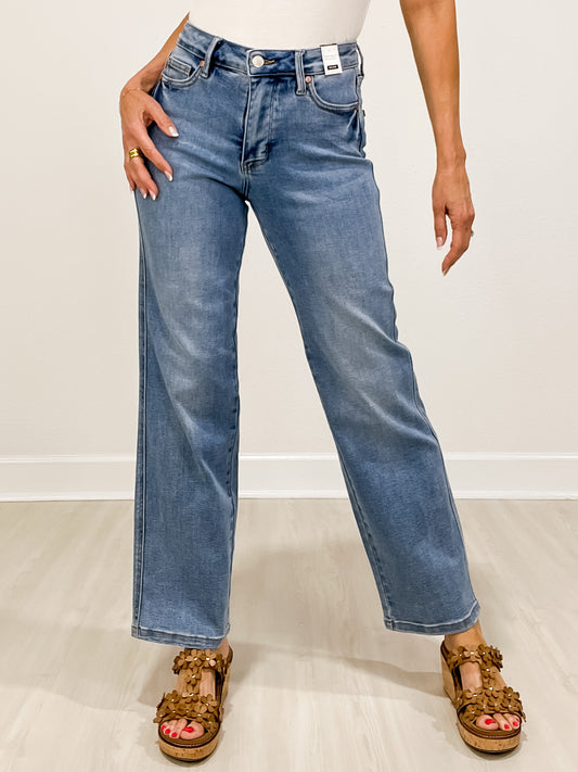 Judy Blue BLUE JEAN BABY Mid-Rise Tummy Control Straight Jeans