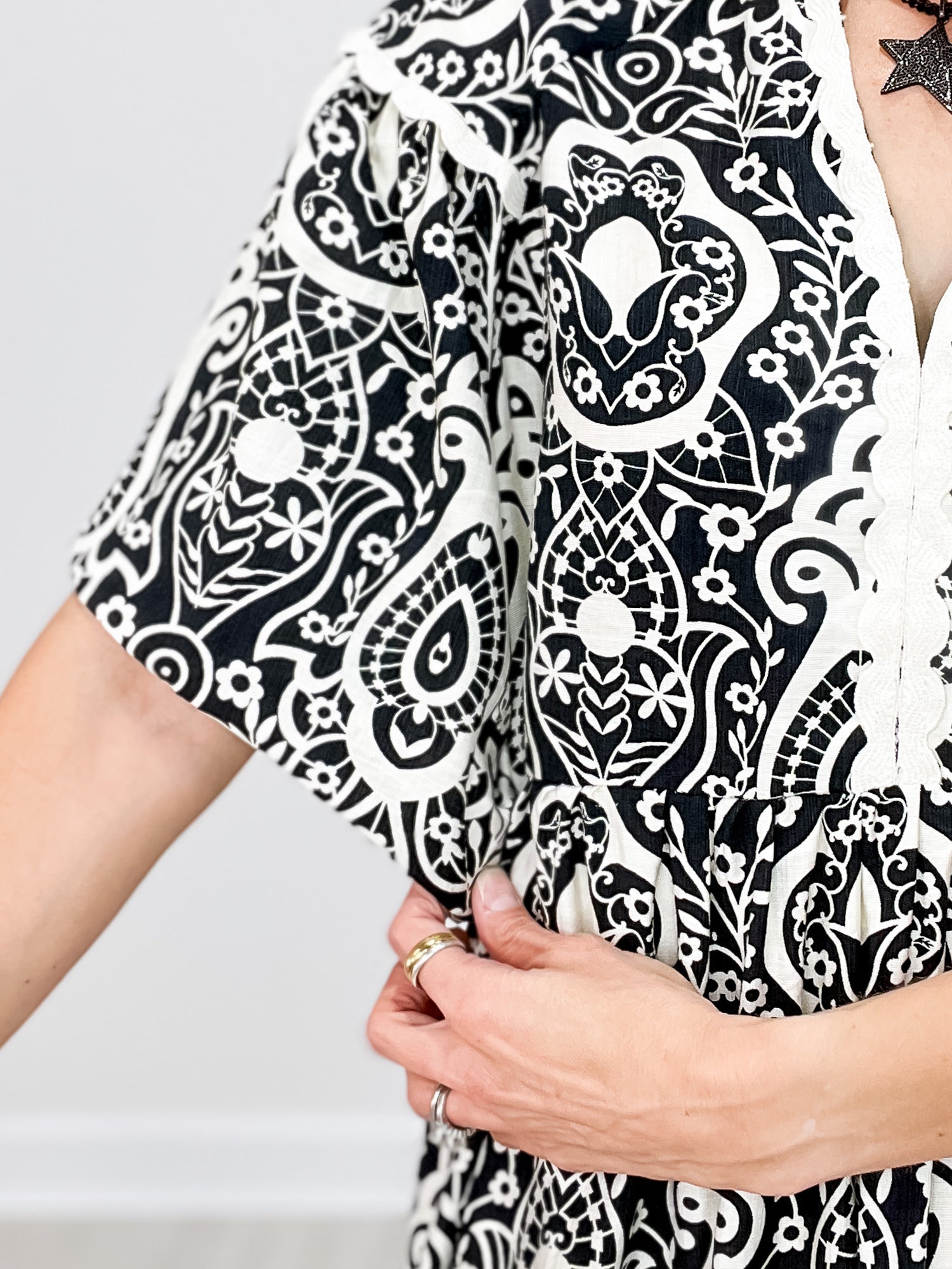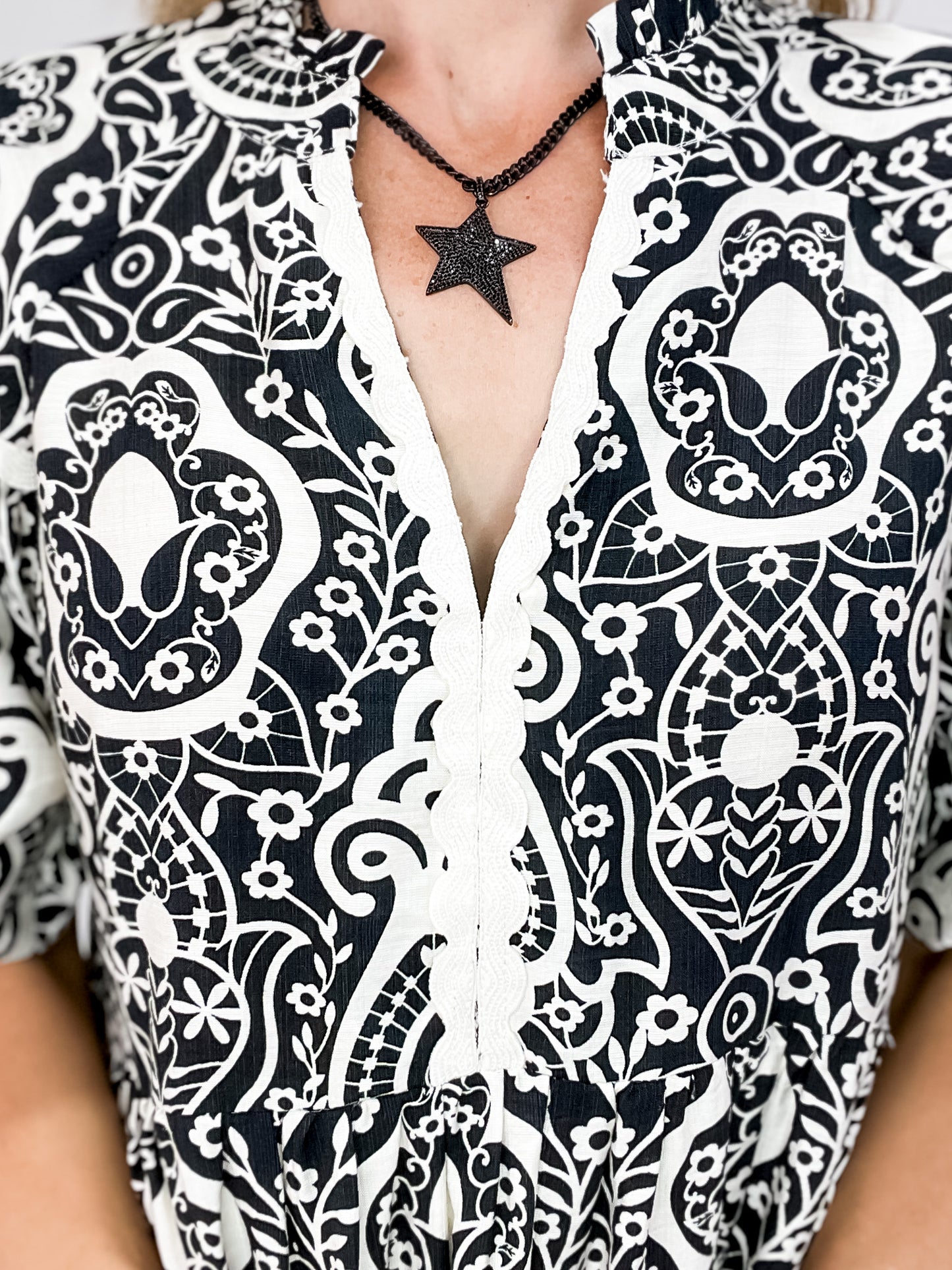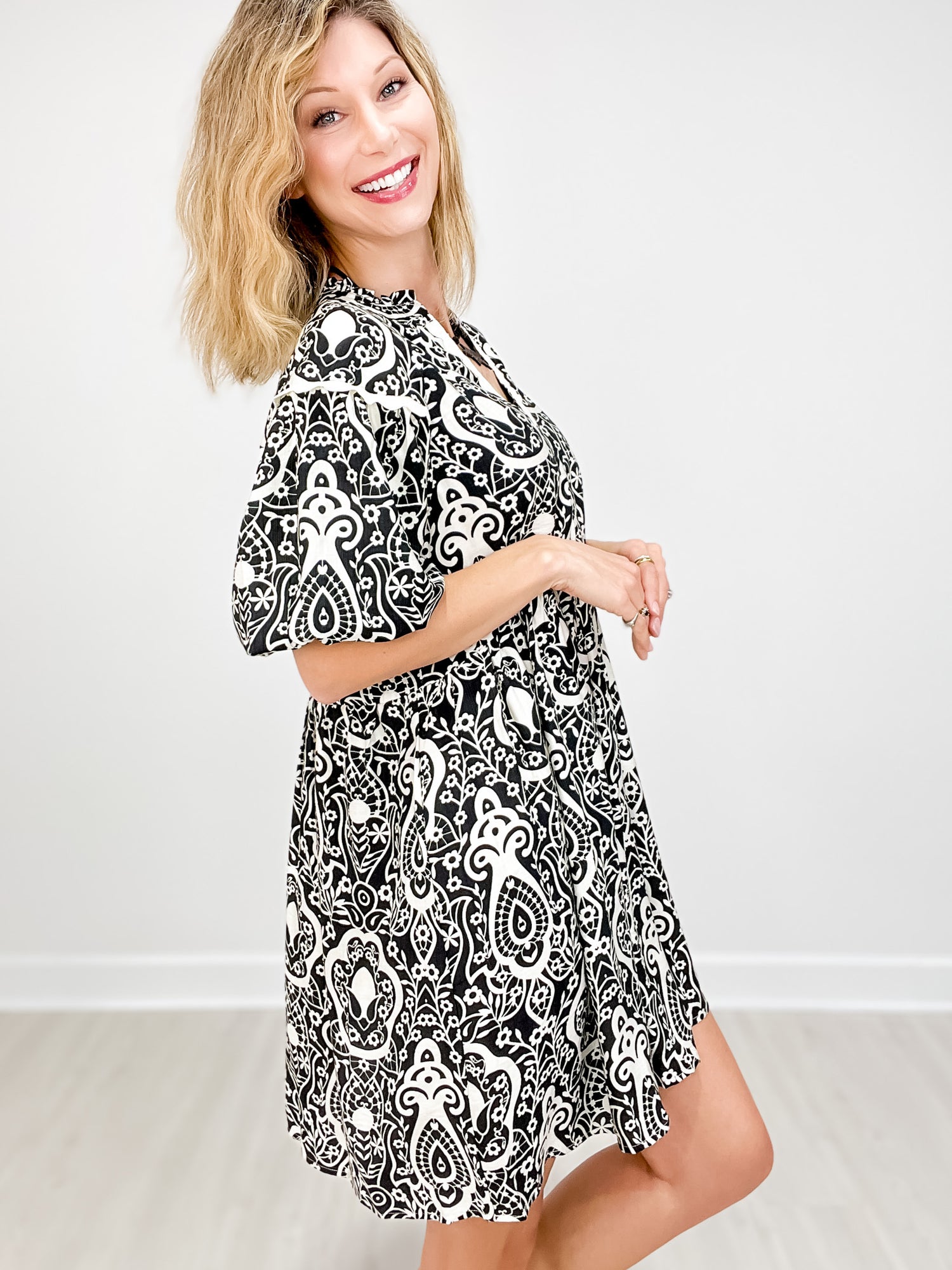 Elevate your style with our Abstract Print High Neck Dress. This dress is perfect for making a statement and features a unique abstract print and trendy puff sleeves. The high neck adds a touch of elegance, making it suitable for any occasion. Upgrade your wardrobe today!