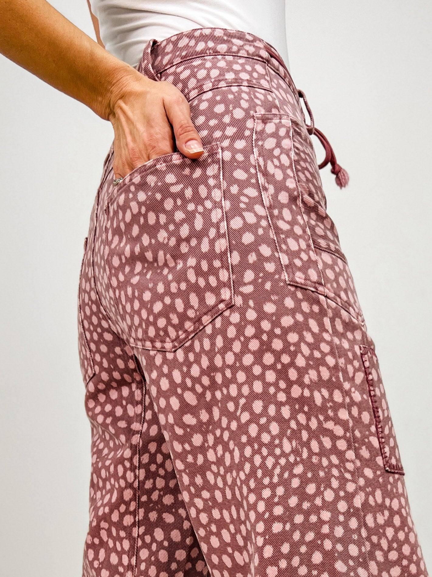 These barrel jeans bring the wild side to your wardrobe with an eye-catching animal-print design on soft, washed twill. The relaxed barrel silhouette offers a modern, laid-back vibe that works perfectly with sneakers or boots. Durable twill construction keeps them looking fresh through countless wears, while the playful print adds personality to any outfit. A versatile piece that transforms casual looks into statement-making moments.