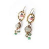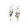 A cluster of cascading gemstones including peridot, chalk turquoise, iolite, and pink opal are dangled below nesting hammered sterling silver hoops. Sterling silver (lead & nickel free) shell, peridot, iolite, pink opal. Approximately 2"" in length. Individually designed and handcrafted in our personal studio in floyd, virginia.