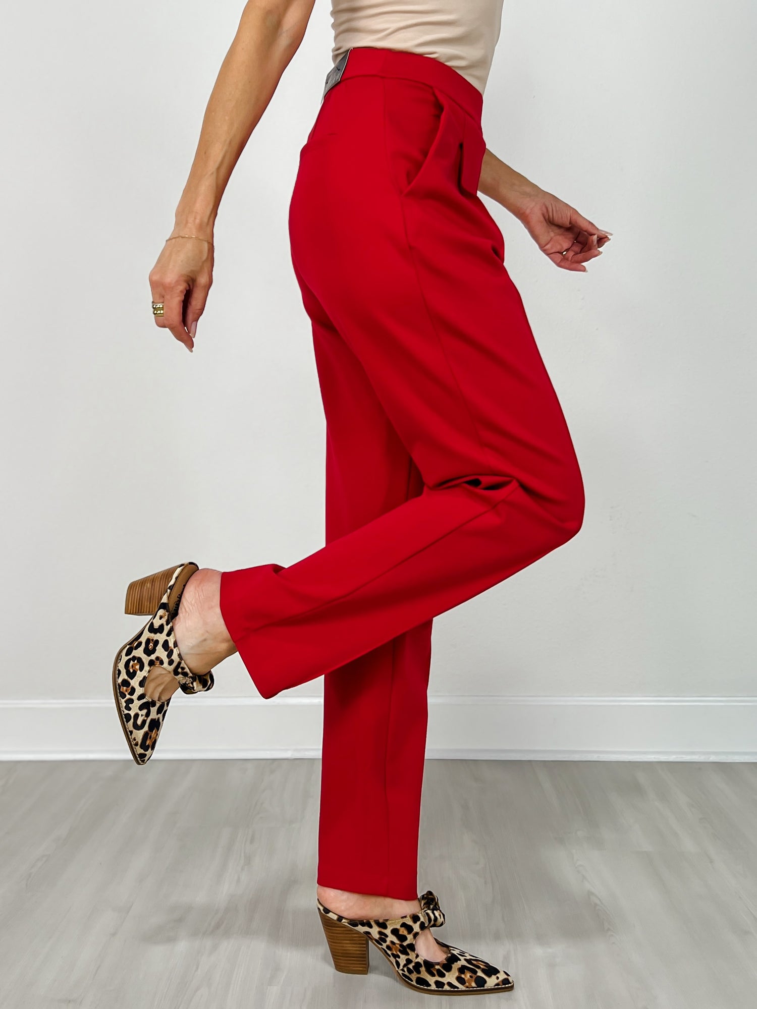 Sleek and versatile, the Barrel Leg Ponte Everywhere Pants are your go-to for effortless style. Crafted from smooth ponte knit, they feature a flattering high waist, crisp front pleats, and a relaxed barrel leg for all-day comfort. Side pockets add function, while the polished design transitions seamlessly from office to evening.