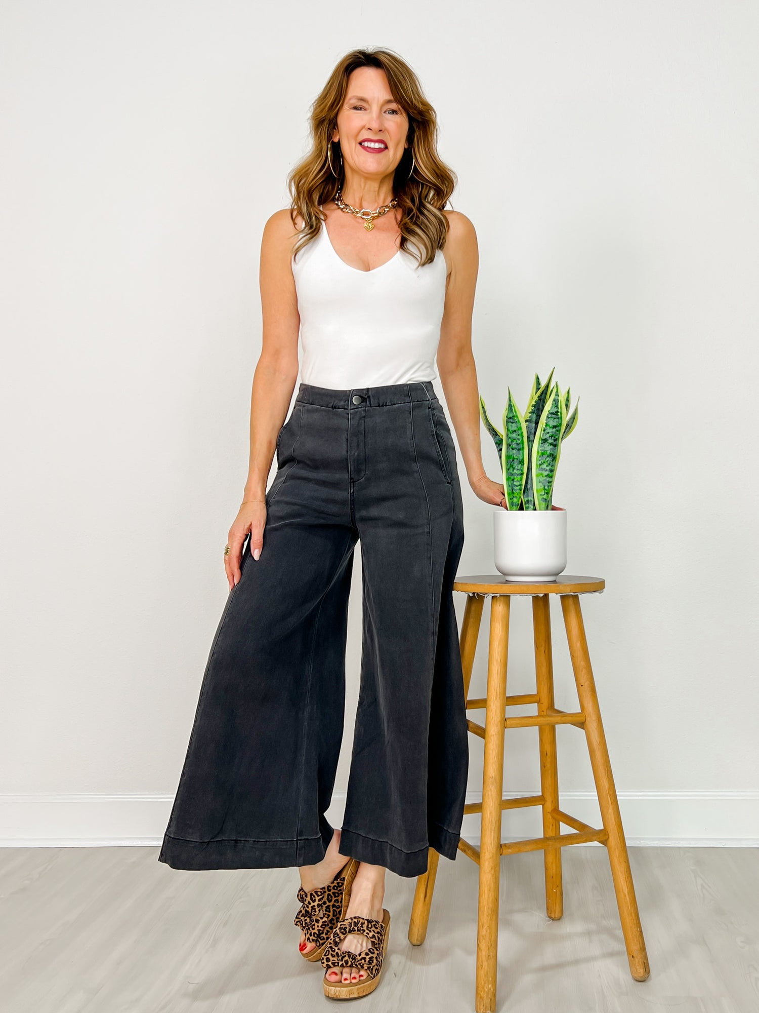 Black Wide Leg Cropped Pants