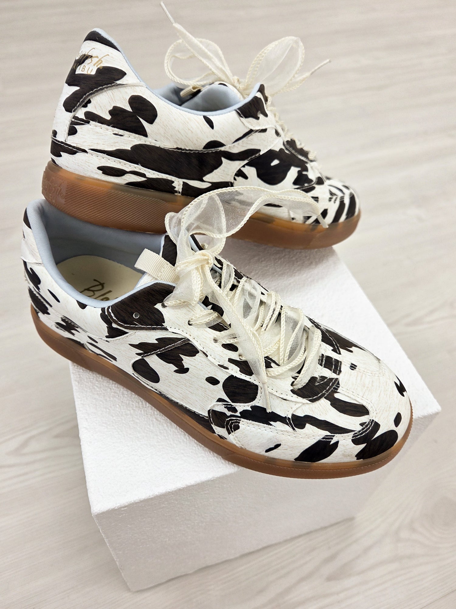 Blowfish Tastic Lace Up Sneaker in Cream/Brown Calf Print