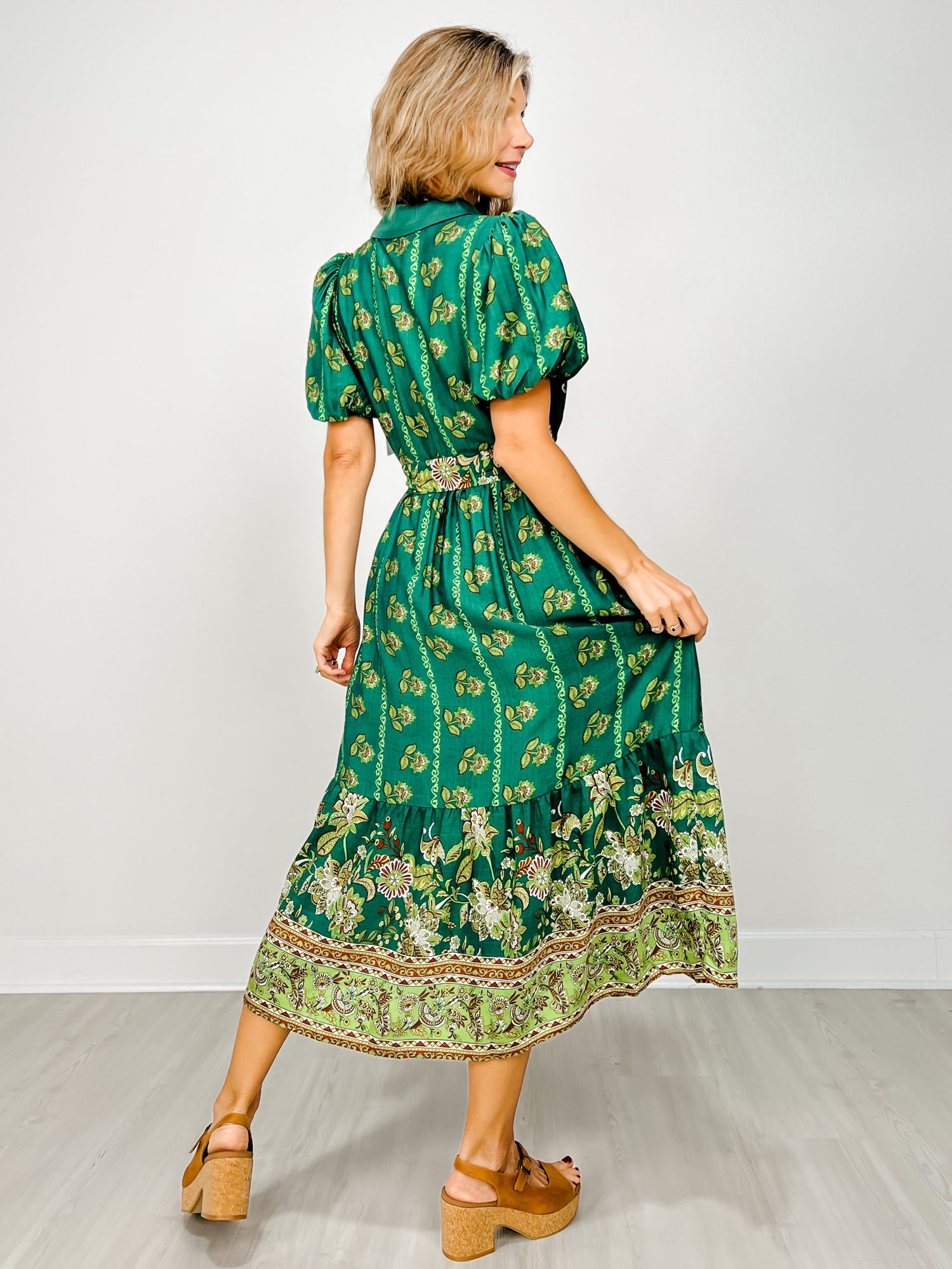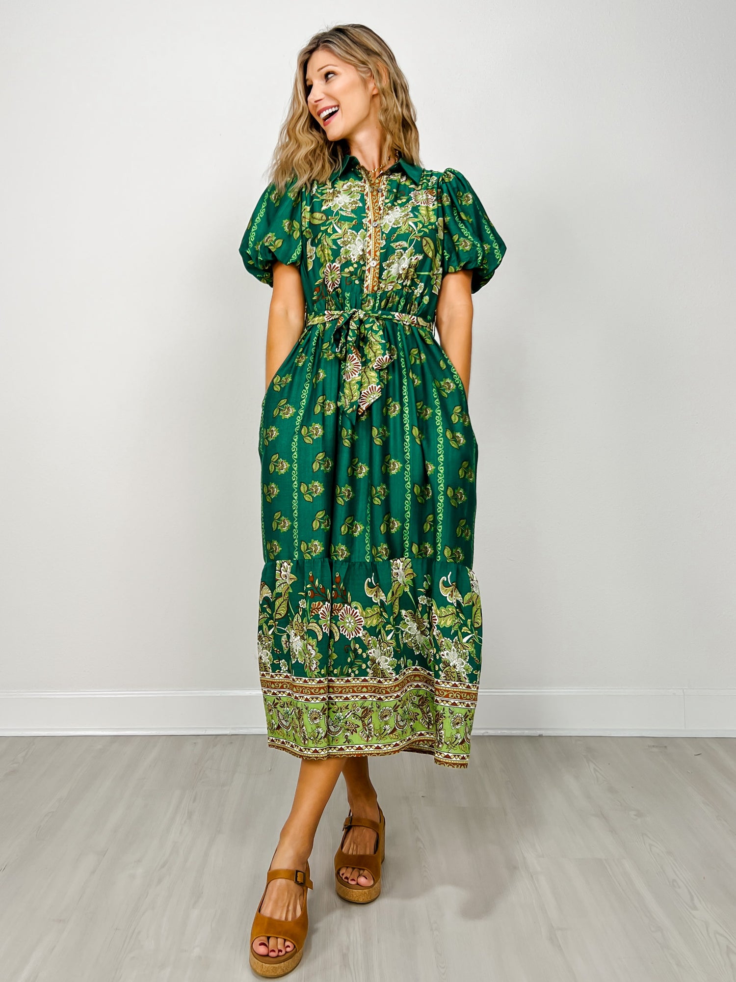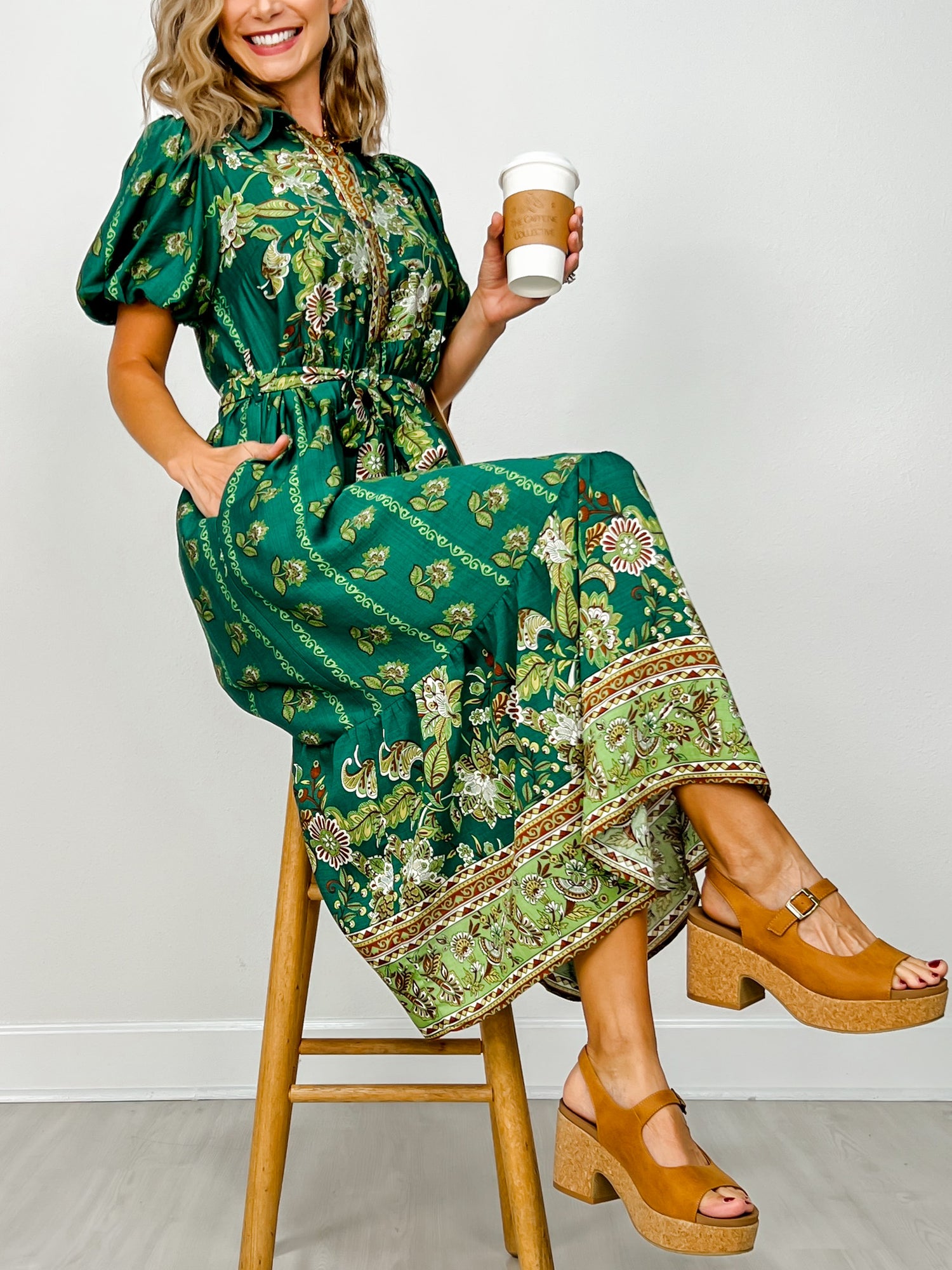 Step into a garden of style with the Botanical Print Short Puff Sleeve Midi Dress. Its cheerful botanical pattern and flirty puff sleeves bring a fresh, playful vibe perfect for sunny days or lively gatherings. The midi length adds a touch of elegance while keeping the look light and breezy, making it your go-to dress for twirling through any occasion with ease and charm.