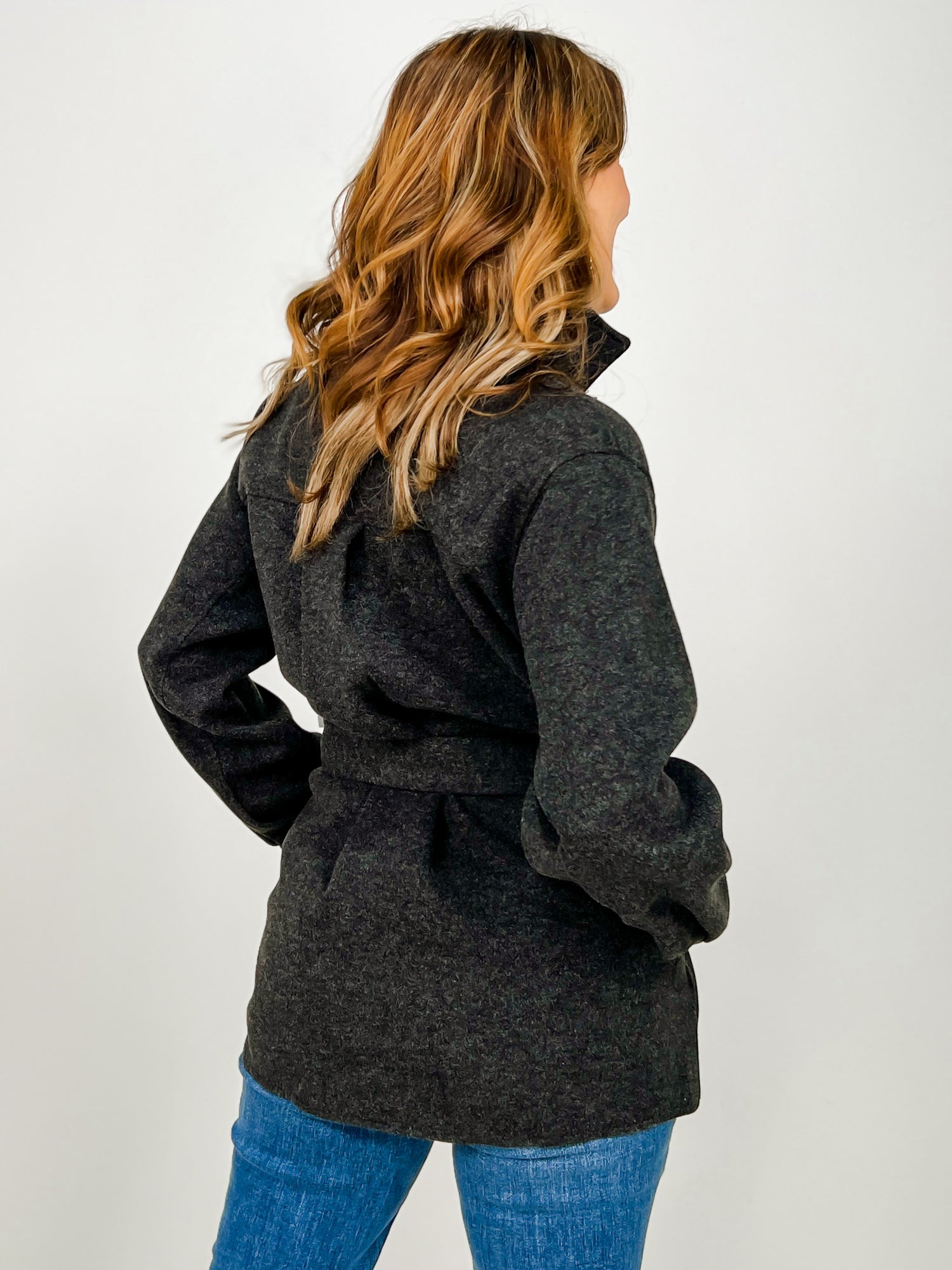 Cozy up in this Button Down Wool-Like Belted Shacket that’s all about effortless style with a cheeky twist. The soft, wool-like fabric keeps you warm while the belted waist adds a flirty shape to your look. Perfect for layering during chilly days, this shacket flips the cold-weather blues into a playful fashion statement you won’t want to take off.