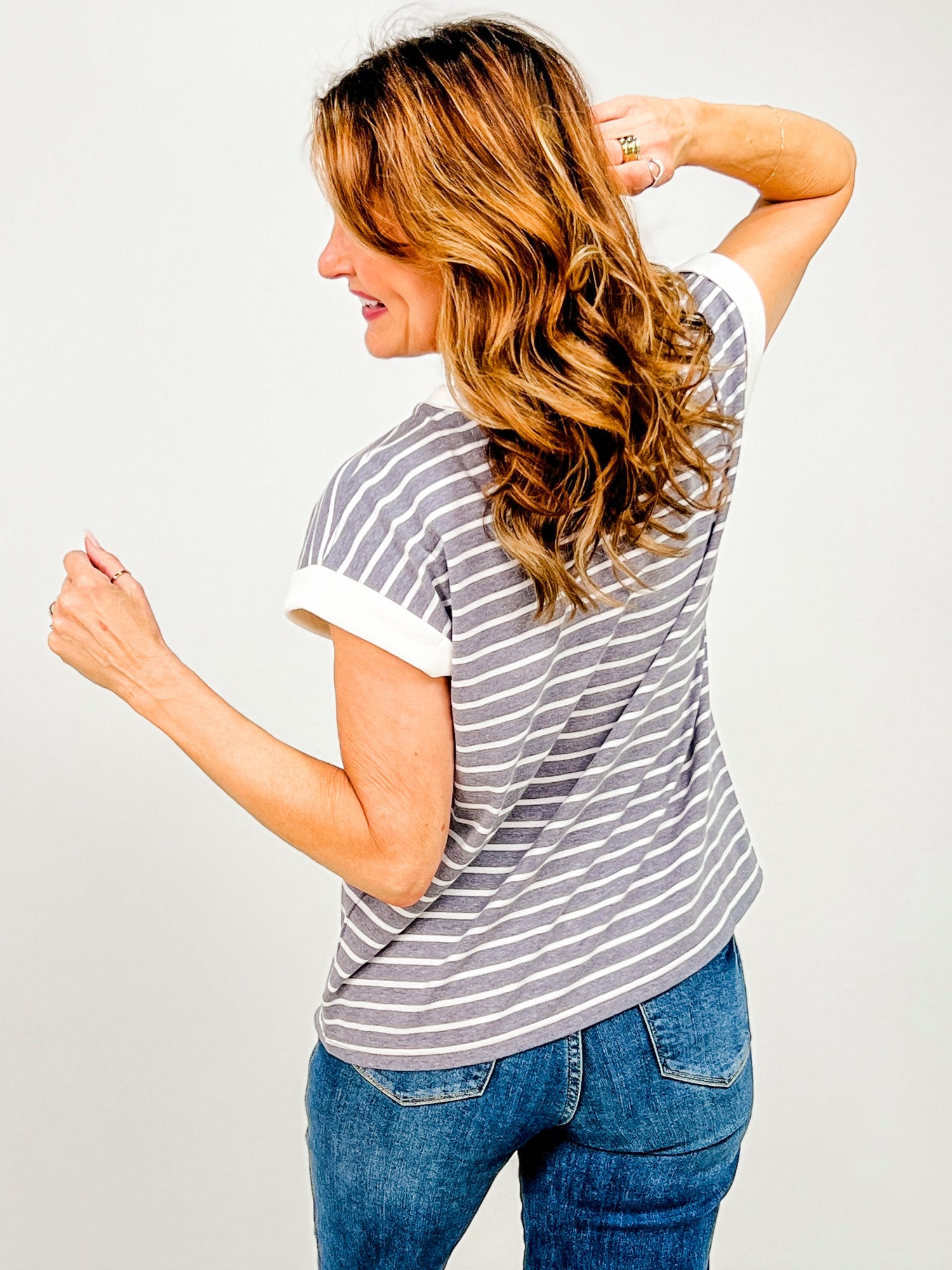 Cap Sleeve Stripe Contrast Trim Top - GRP A