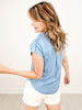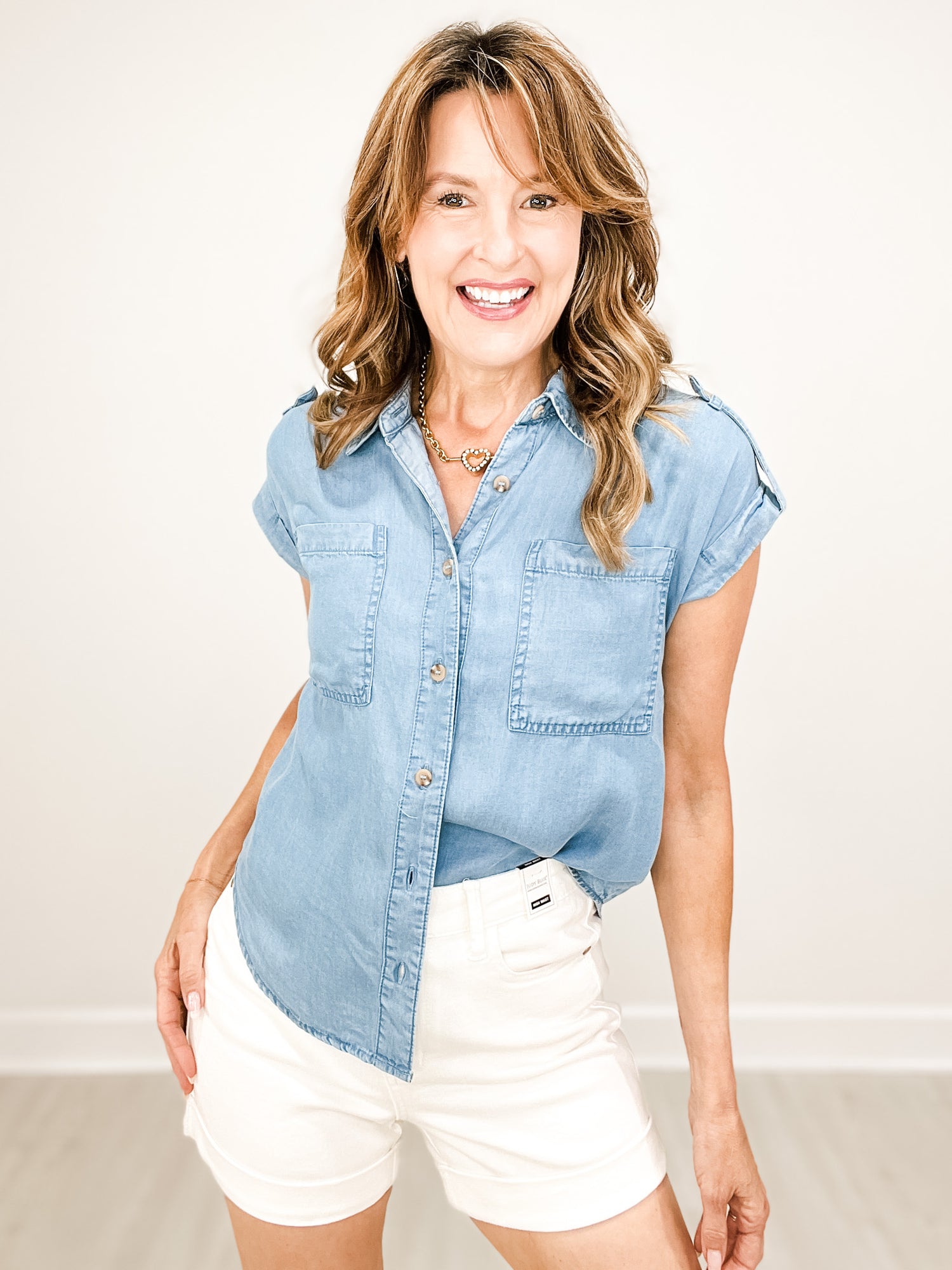 Collared Button-Down Cuff Sleeve Pintuck Top