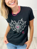 Elevate your style with the enchanting Spiderweb Heart Graphic Tee, featuring a mesmerizing rose gold foil heart. This tee beautifully combines the mystique of spiderwebs with the elegance of rose gold, creating a unique and captivating design. Whether you're drawn to the intricate beauty of webs or the romantic allure of the heart, this tee is a stunning addition to your wardrobe. Embrace the magic in every thread and beat of your heart.
