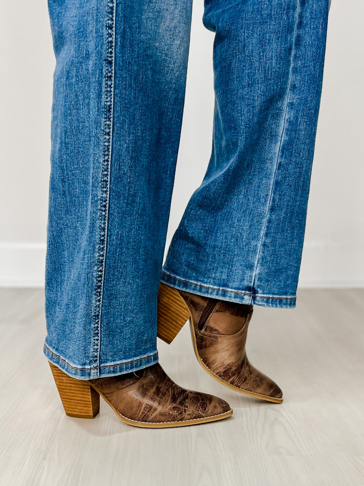 Step out in wild style with the Corkys Bar Hoppin Booties—the perfect mix of fierce and fashionable. These statement ankle boots feature a soft faux suede upper, bringing instant attitude to any outfit. The stacked block heel adds just the right amount of height while keeping every step comfortable and stable. With easy slip-on side cutouts and signature Corkys cushioning, these booties were made for nights out, weekend adventures, and everywhere in between.