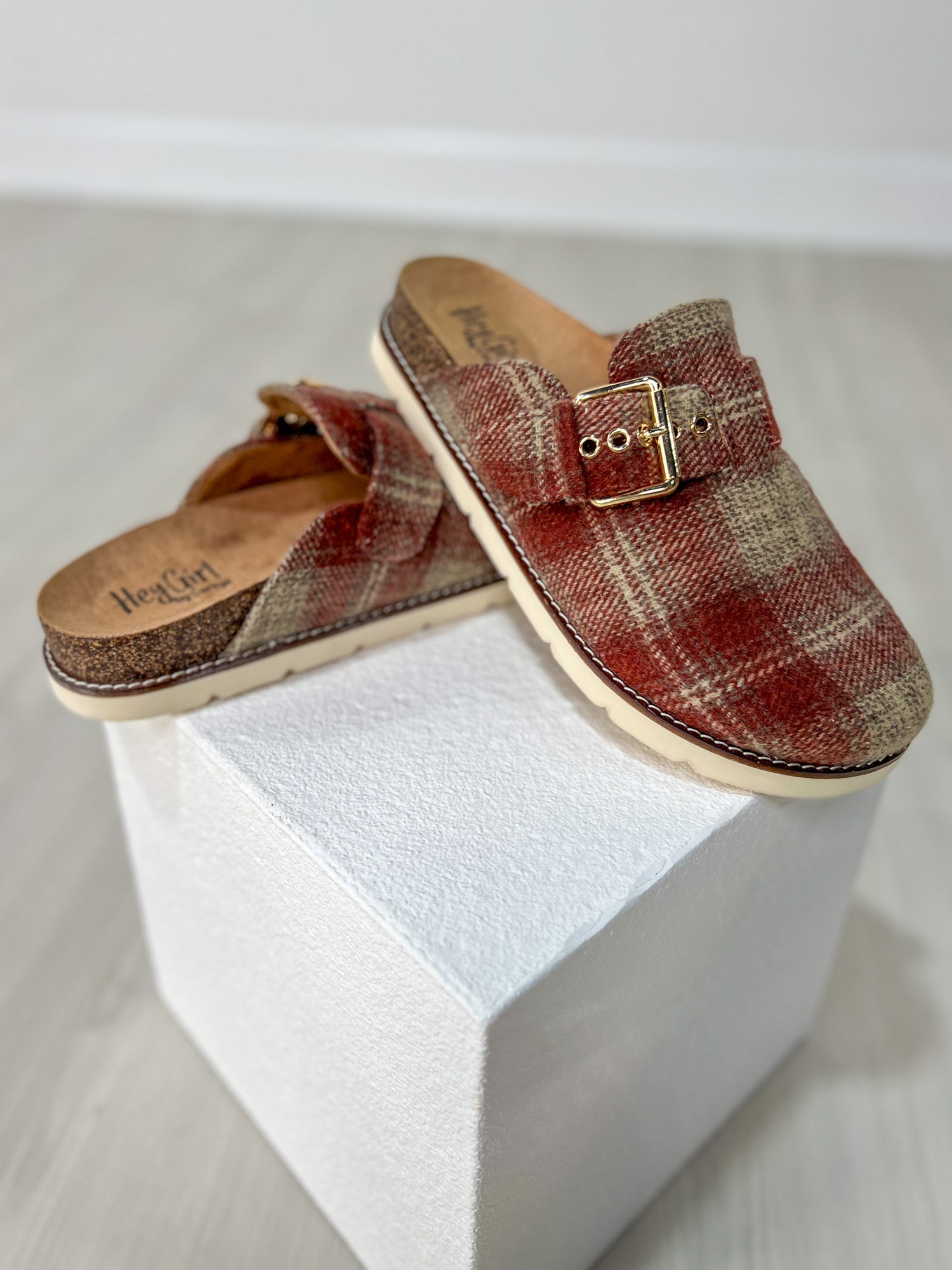 Step into cozy-chic comfort with the Corkys Day Dream in Rust Plaid. This stylish mule combines rustic charm with everyday ease, featuring a soft plaid fabric upper in warm autumn tones. The oversized gold buckle adds a touch of polished detail, while the cushioned insole and cork-inspired footbed keep every step light and supportive. Perfect for lounging at home or casual days out, these slip-ons pair beautifully with denim, leggings, or your favorite oversized sweater.