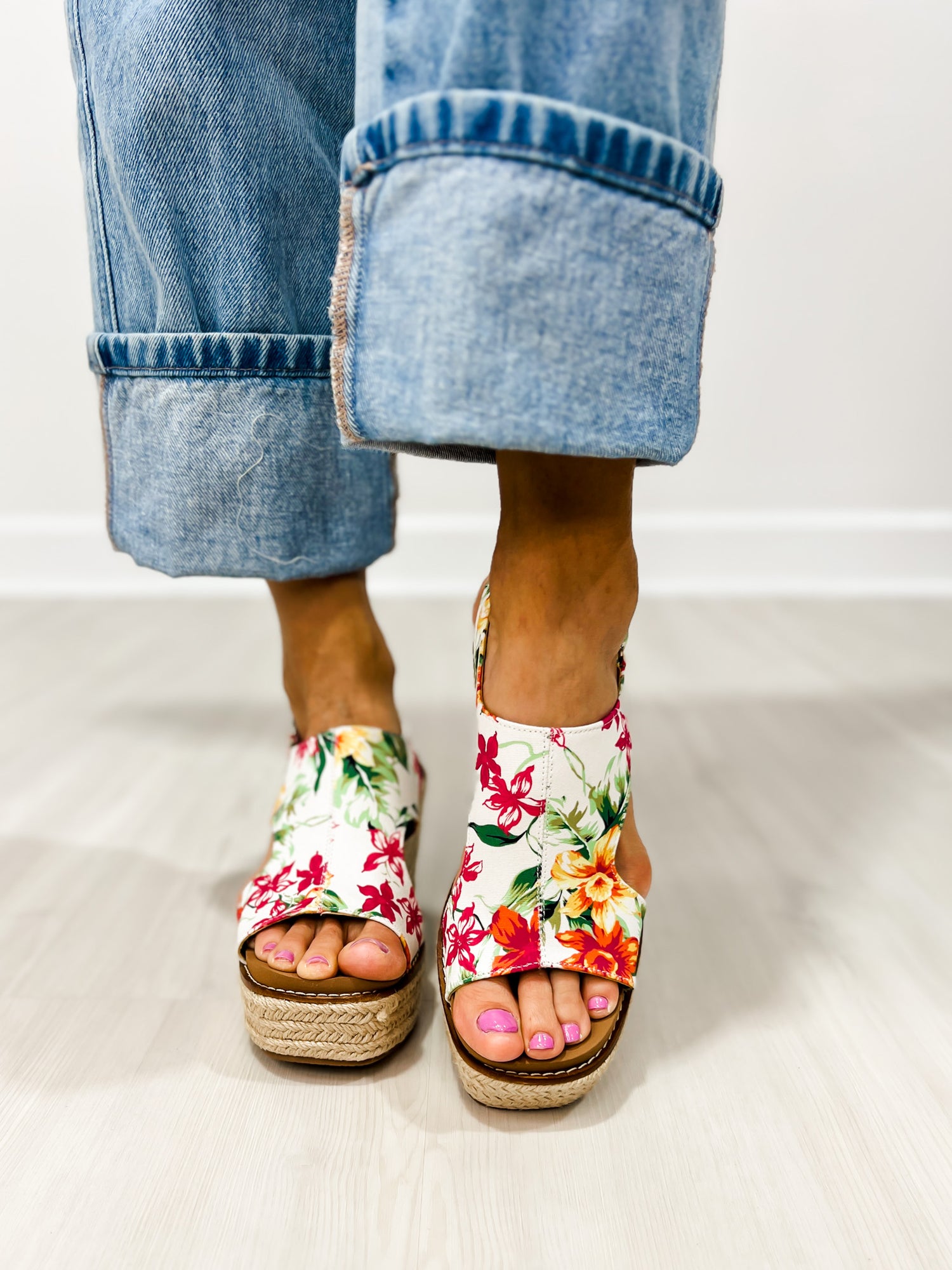 Corkys Freddie Wedge Sandals in WHITE FLORAL