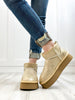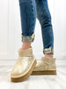 Elevate your style with these luxurious Corkys Room Service Booties in Washed Gold Metallic. Crafted with comfort in mind, these booties feature a soft faux suede material and a trendy, versatile blush color. Perfect for any occasion, these booties will add a touch of elegance to any outfit and keep you comfortable all day long!