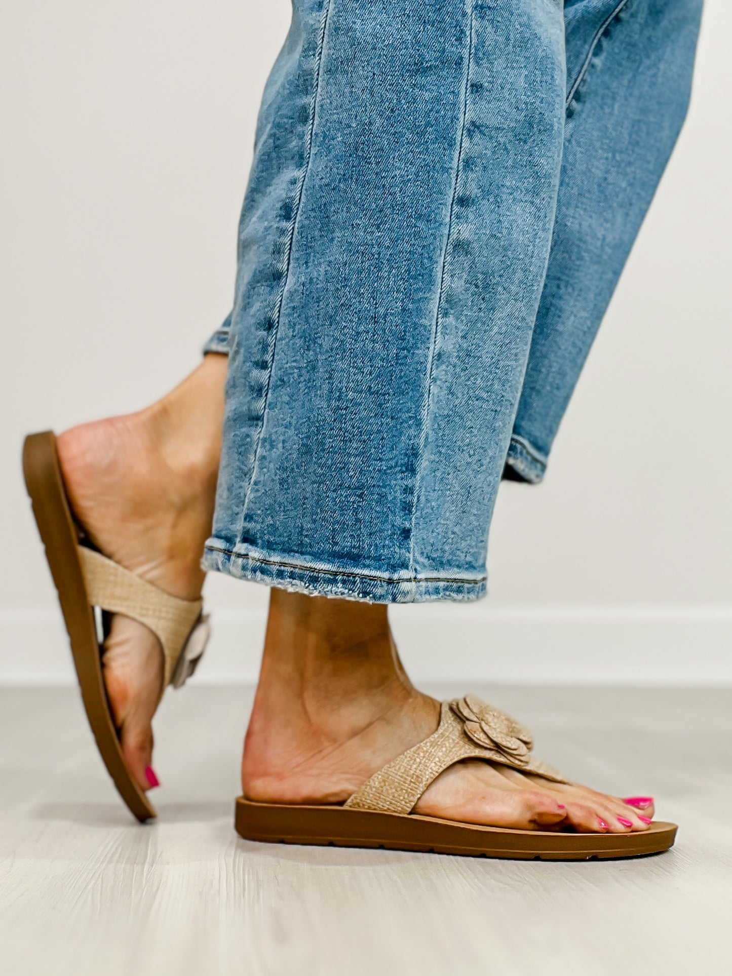 Step into sunny-day style with the Corkys So Delish Sandal! Featuring a playful 3D flower accent on the strap, these flip-flops bring a flirty and feminine touch to any warm-weather look. The cushioned, faux-suede footbed provides all-day comfort, while the lightweight, flexible sole makes them ideal for beach days, vacations, or everyday casual wear. Available in versatile neutrals like Black, White, and Raffia, they pair effortlessly with dresses, denim, or swimwear.