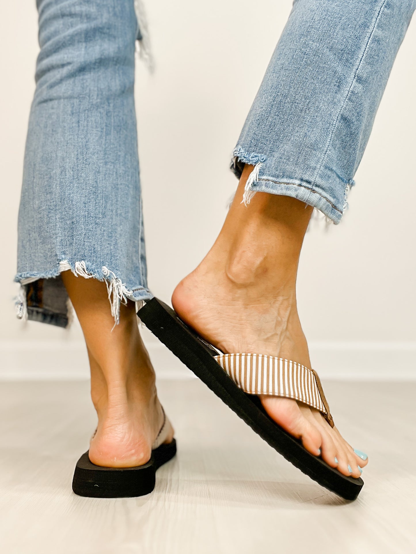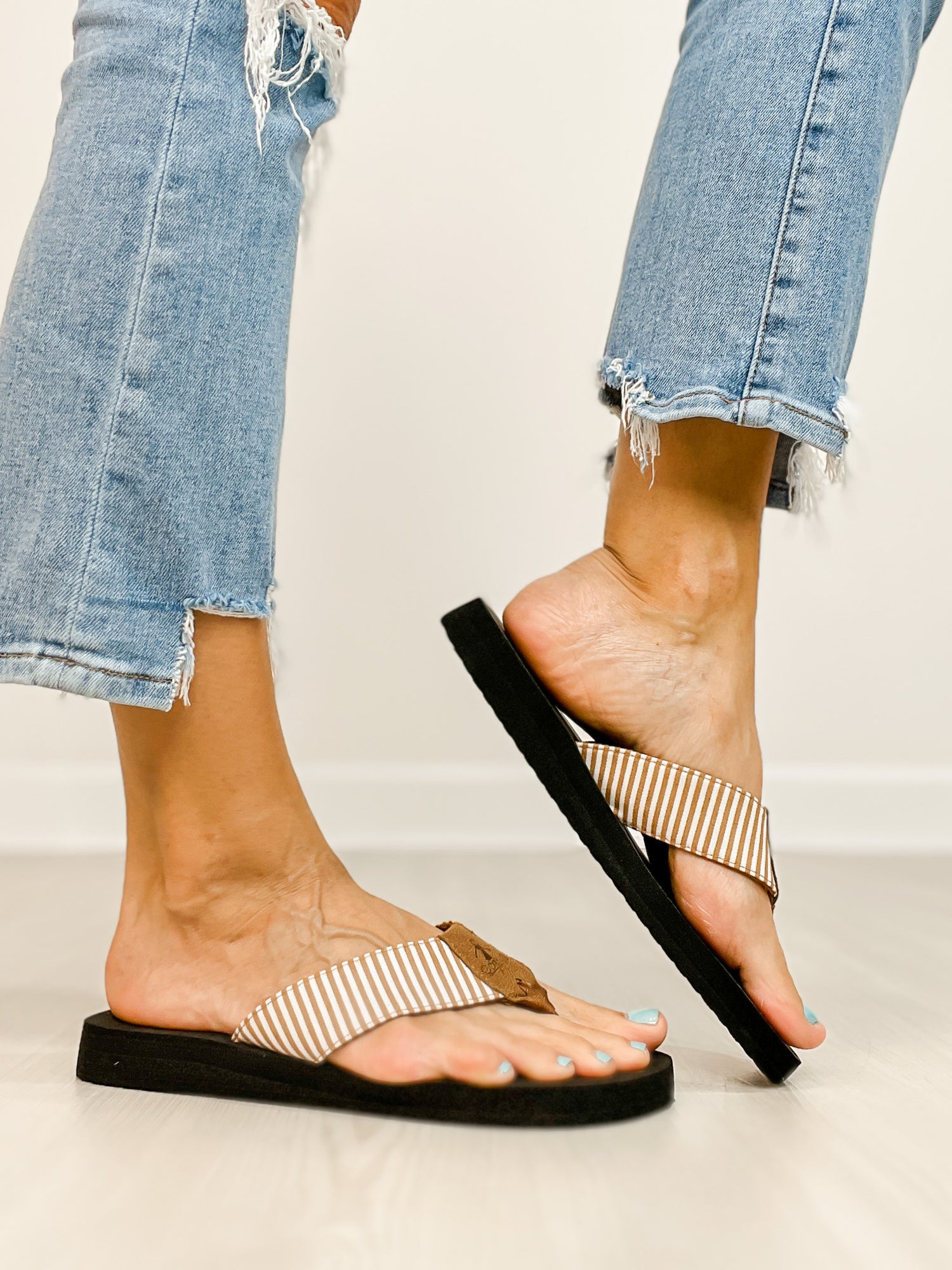 Corkys Summer Break Flip Flop Sandals in Tan White Stripe