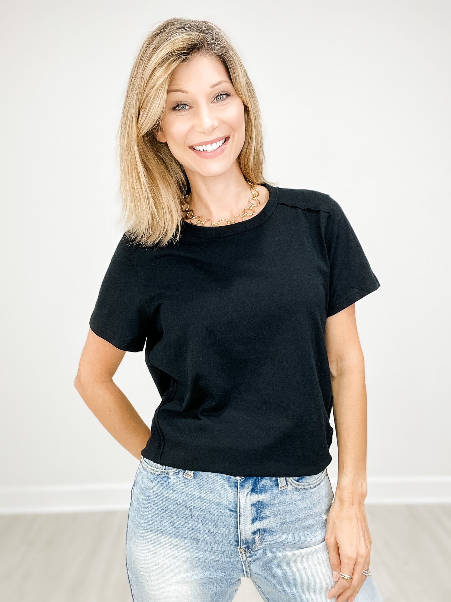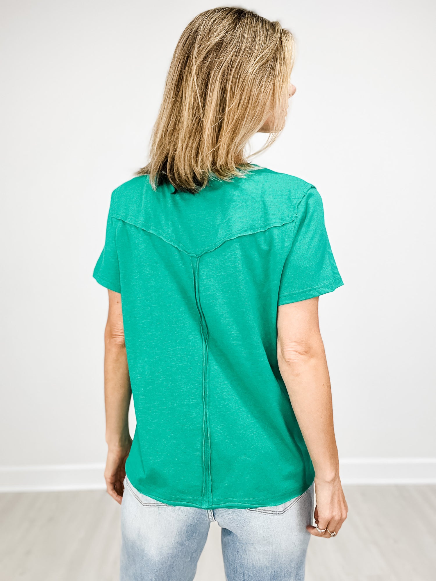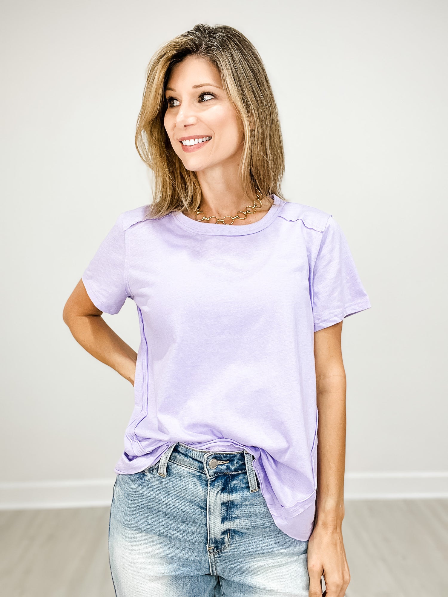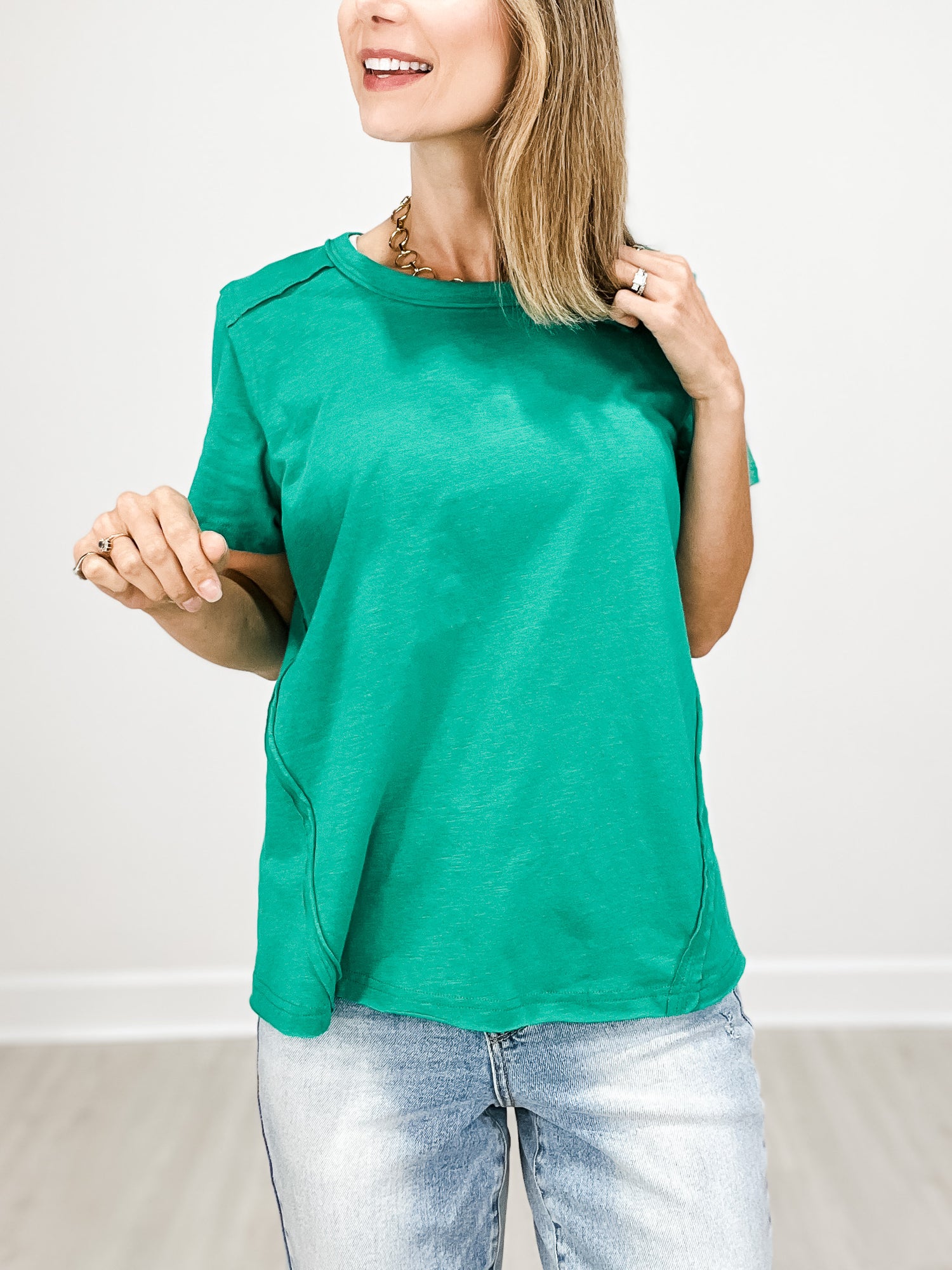 Cotton Slub Short Sleeve Top with Raw Edge Detail GRP A