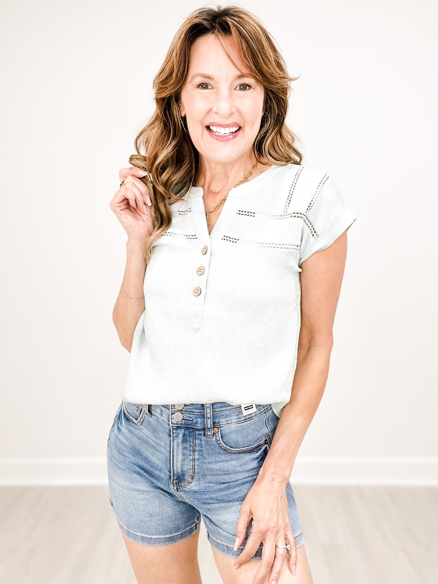 Crochet Lace Trim Short Sleeve Henley Top