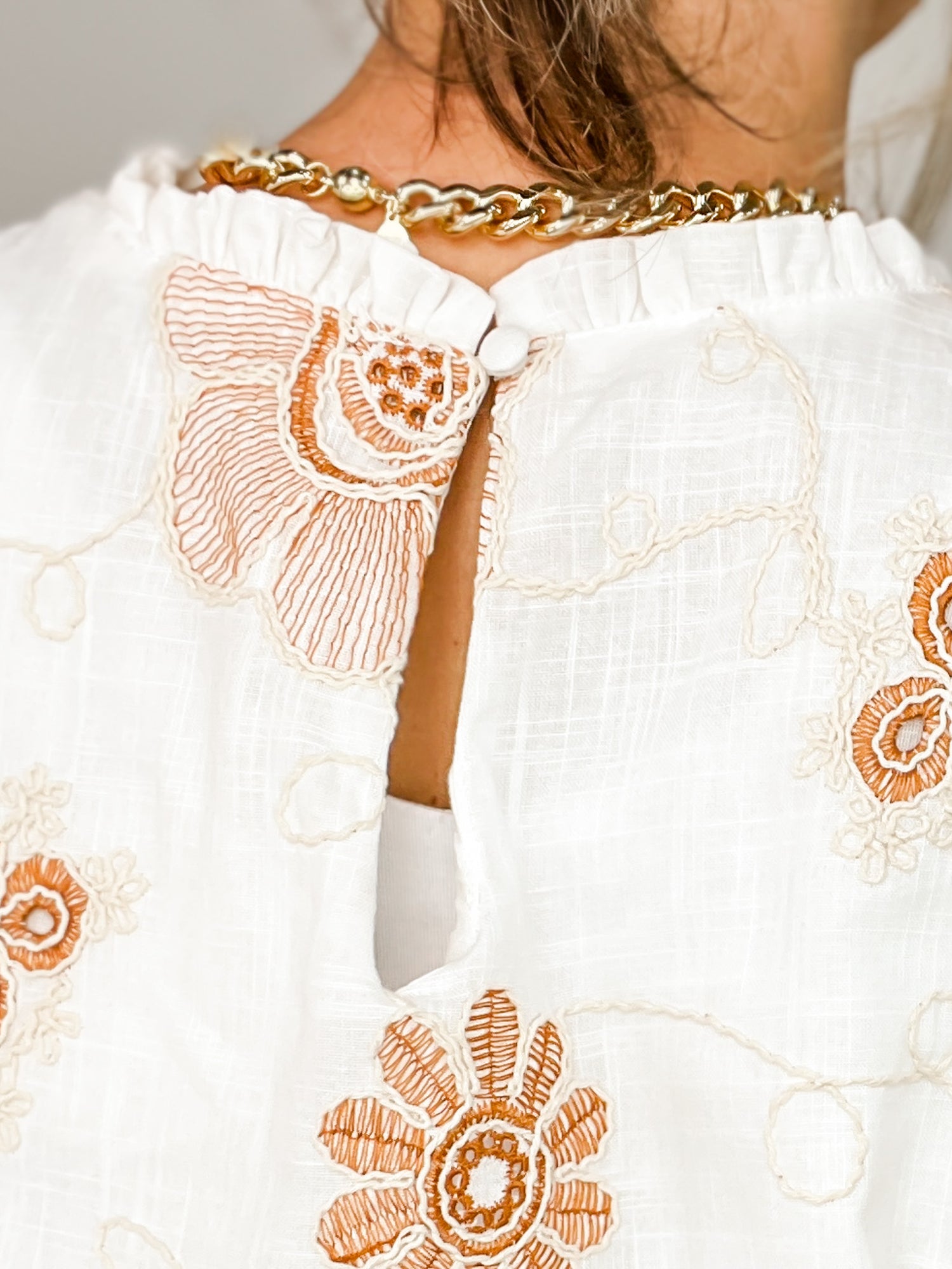 Brighten your wardrobe with the Daisy Embroidered Short Puff Sleeve Top! Featuring charming daisy embroidery and playful puff sleeves, this top adds a fresh, flirty touch to any outfit. Perfect for sunny days or casual outings, it combines comfort with a fun, feminine vibe.