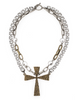 DOUBLE STRAND LYON CHAIN AND AUSTRIAN CRYSTAL WITH FRENCH CROSS