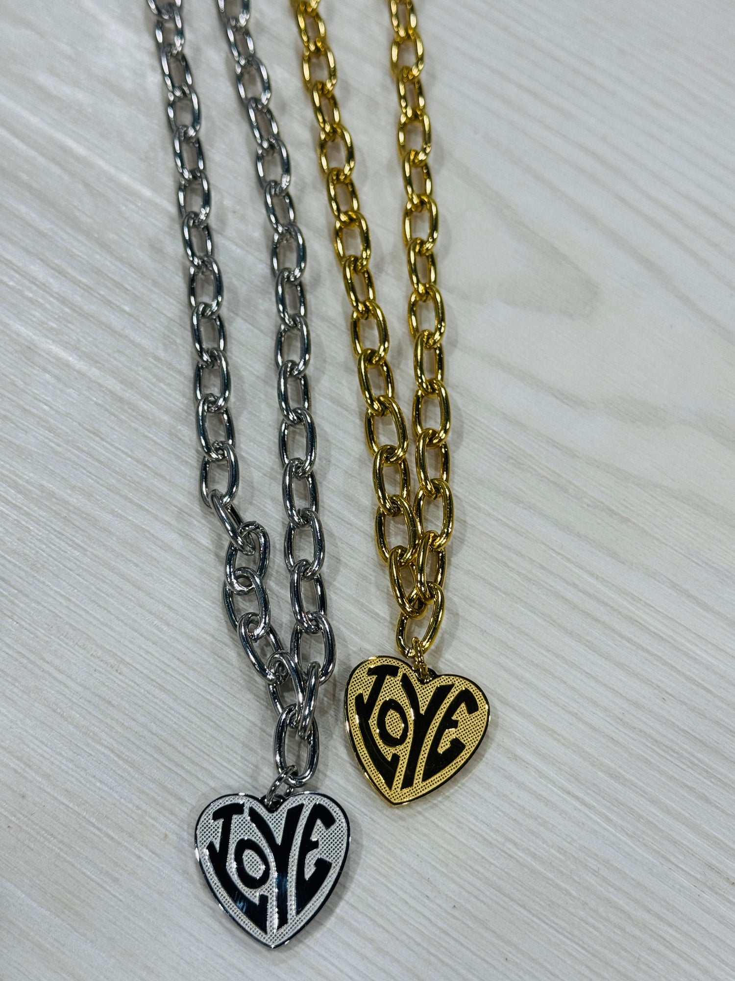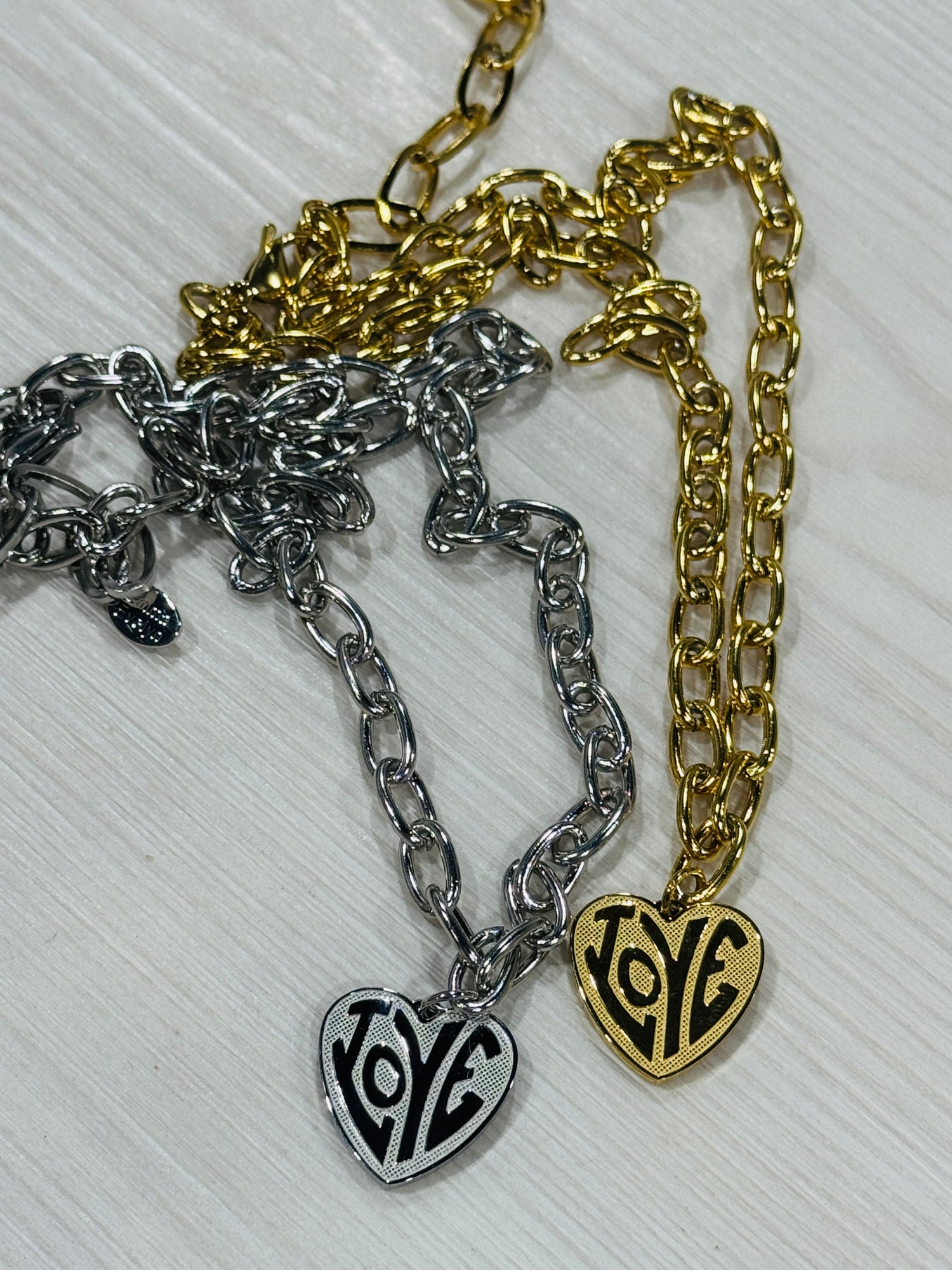Bold, meaningful, and effortlessly chic — our LOVE Heart Necklace is the perfect reminder to wear your heart out loud. Each necklace features a modern, chunky chain and a heart-shaped pendant engraved with the word “LOVE” in an artistic script. Available in gold or silver tones, this piece layers beautifully or makes a striking statement all on its own.