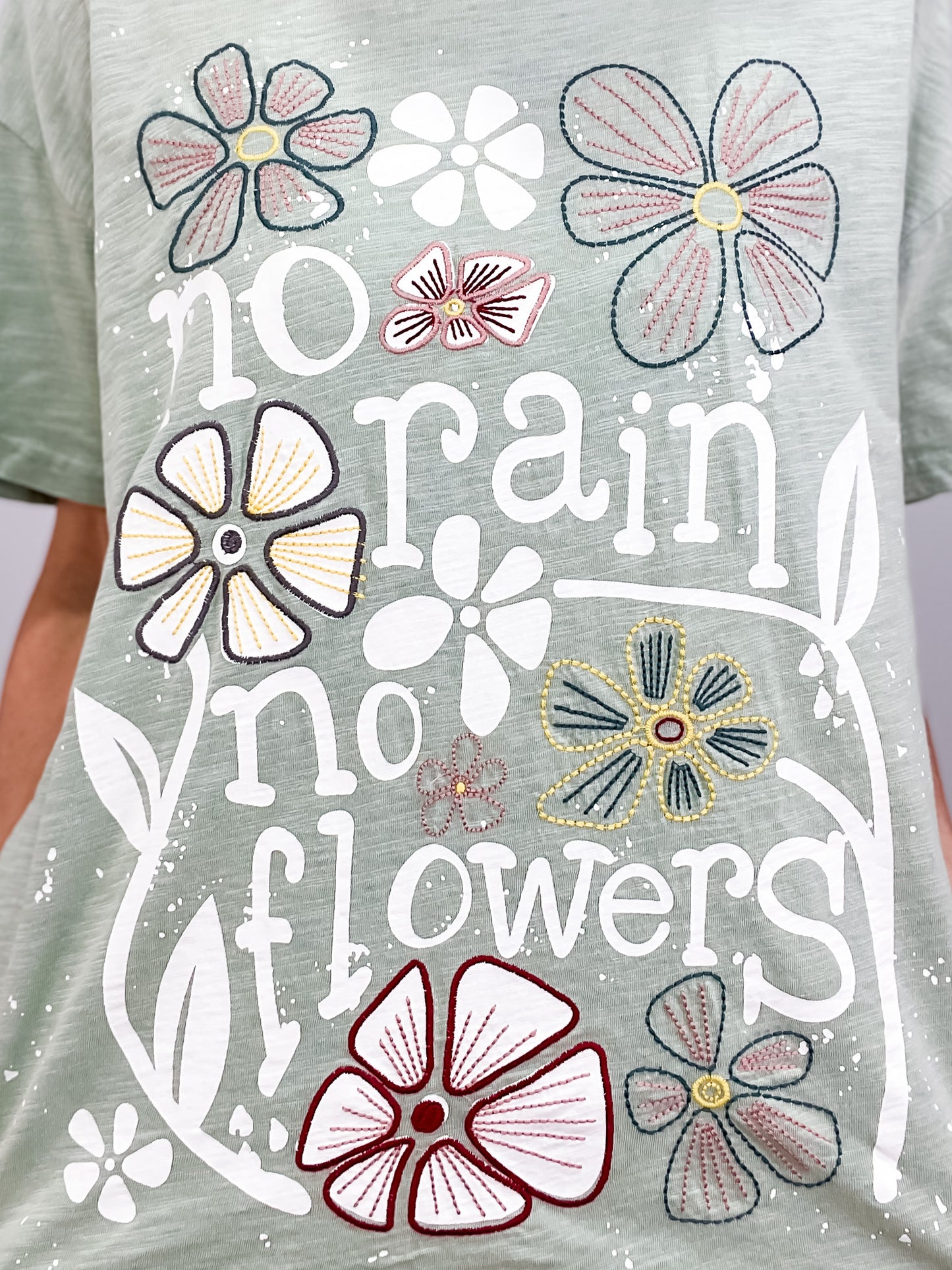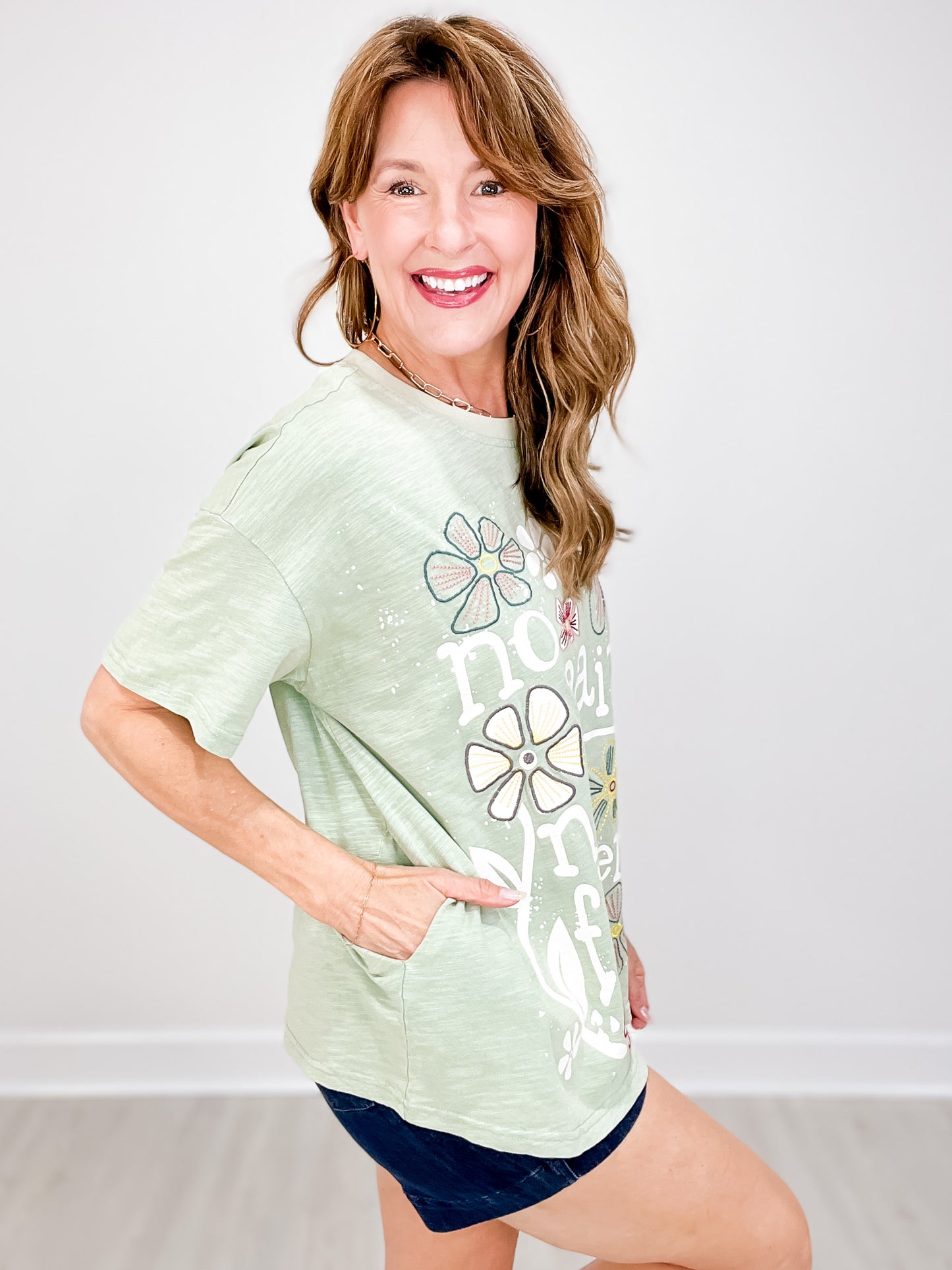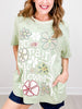 Embroidered Graphic Print Short Sleeve Top with Side Pockets