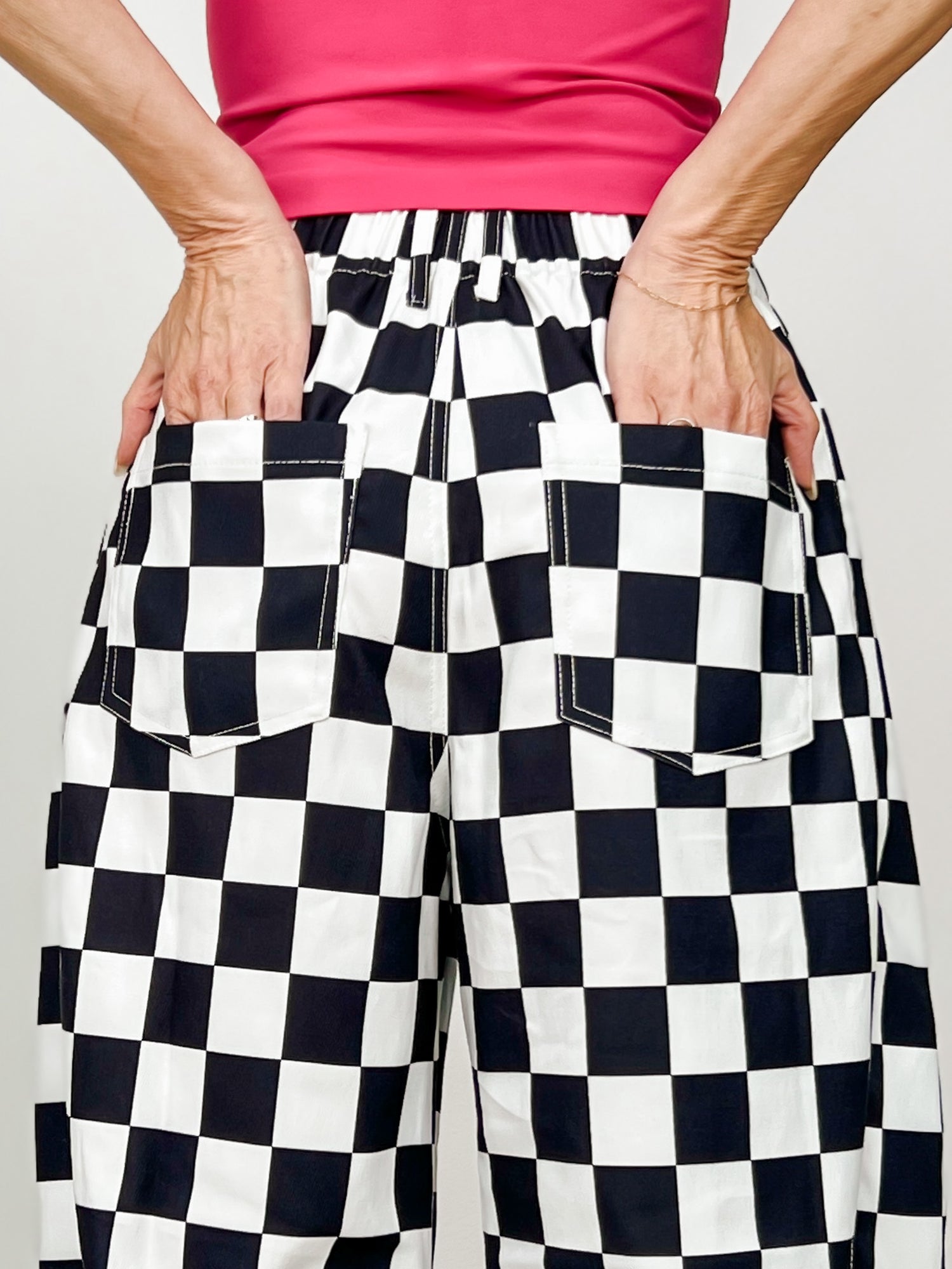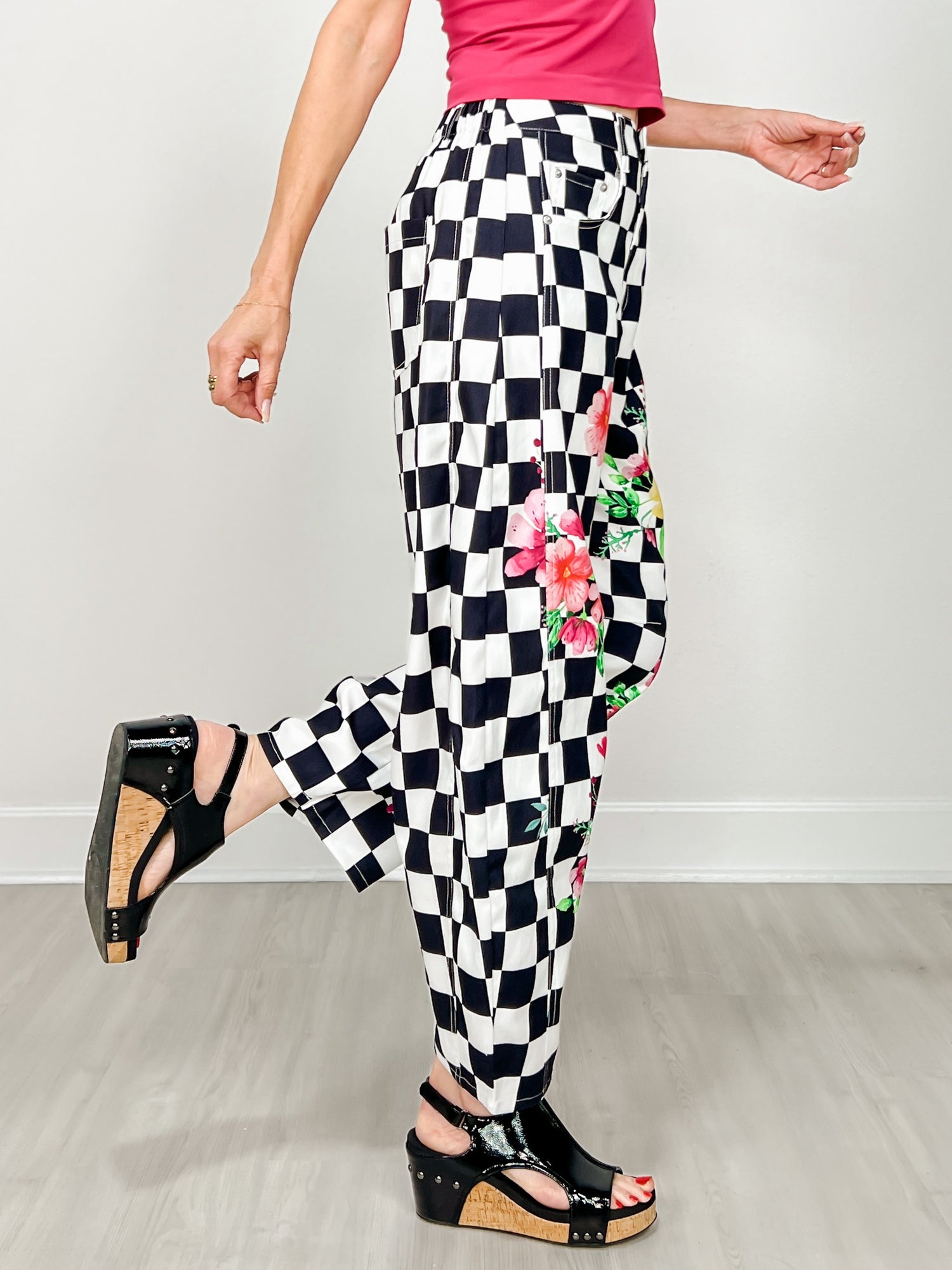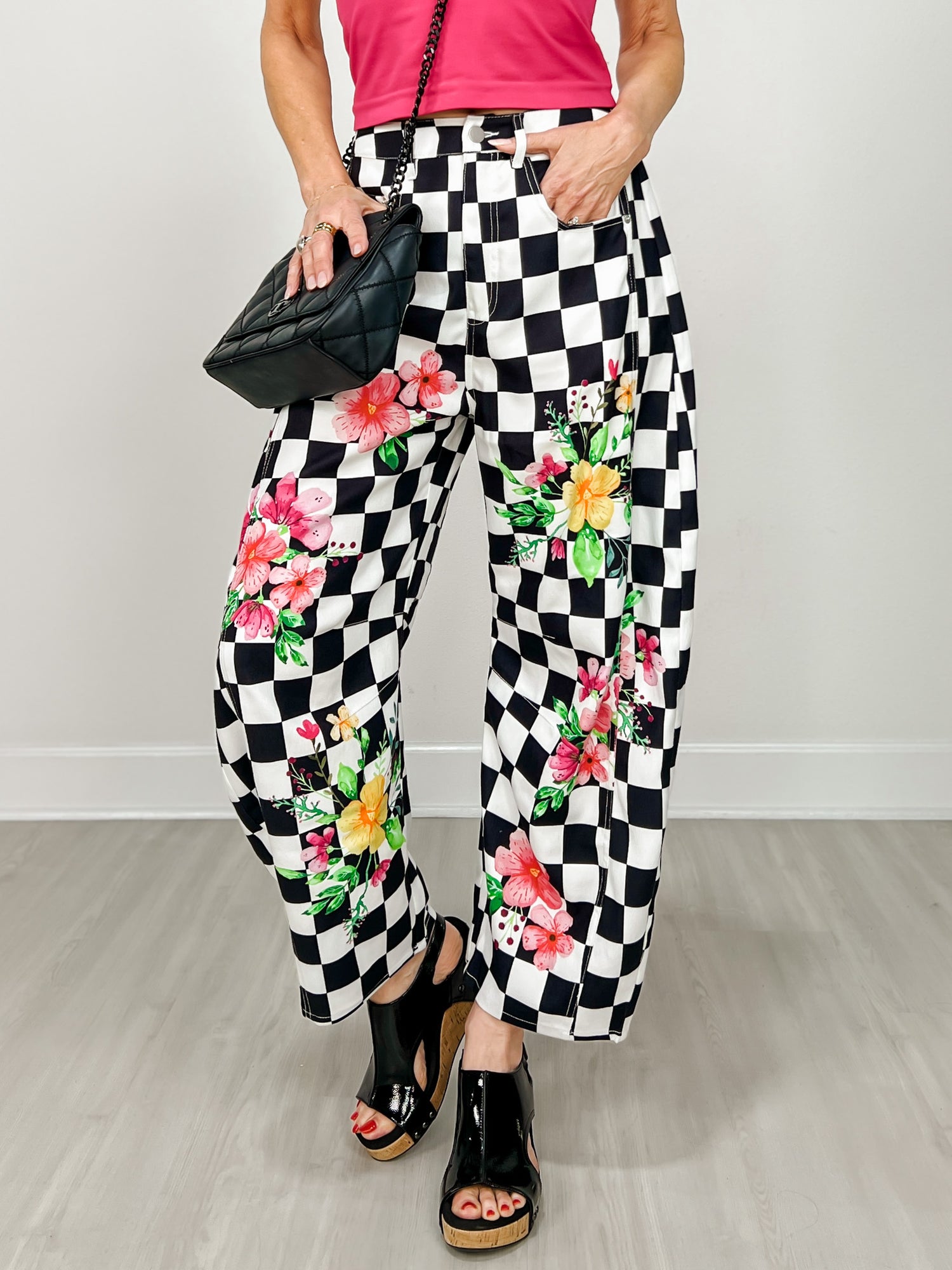Mix-and-match prints collide in these bold barrel pants that refuse to play it safe. Featuring a split design with vibrant florals on one side and a classic checkerboard on the other, they're the ultimate statement piece for fashion rebels. The relaxed barrel silhouette keeps things comfy while the contrasting patterns deliver serious style points. Perfect for anyone ready to turn heads and break the rules.