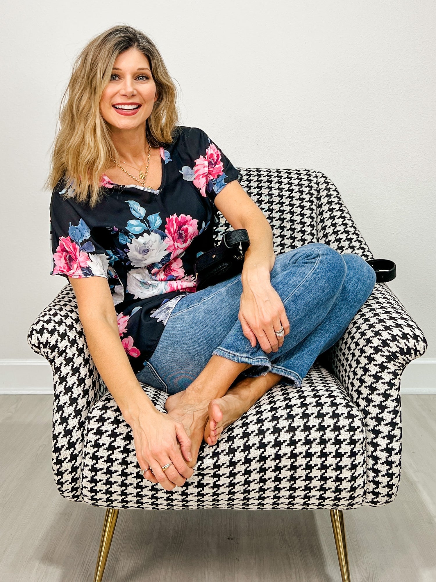 Bloom into effortless style with this relaxed woven top featuring a charming floral print that brings garden-fresh vibes to your everyday wardrobe. The flattering V-neckline adds a touch of sophistication, while the loose, comfortable fit makes it perfect for lazy days or casual outings. Pair it with your favorite jeans, linen pants, or a flowing skirt for a look that feels as good as it looks. Whether you're grabbing coffee or meeting friends, this versatile piece is your new go-to for laid-back elegance.