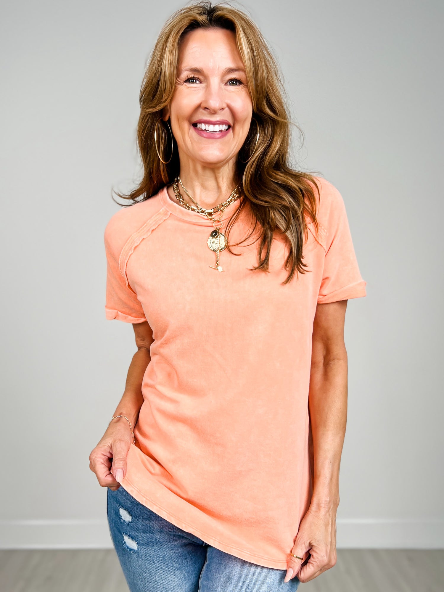 French Terry Washed Curved Hem Top