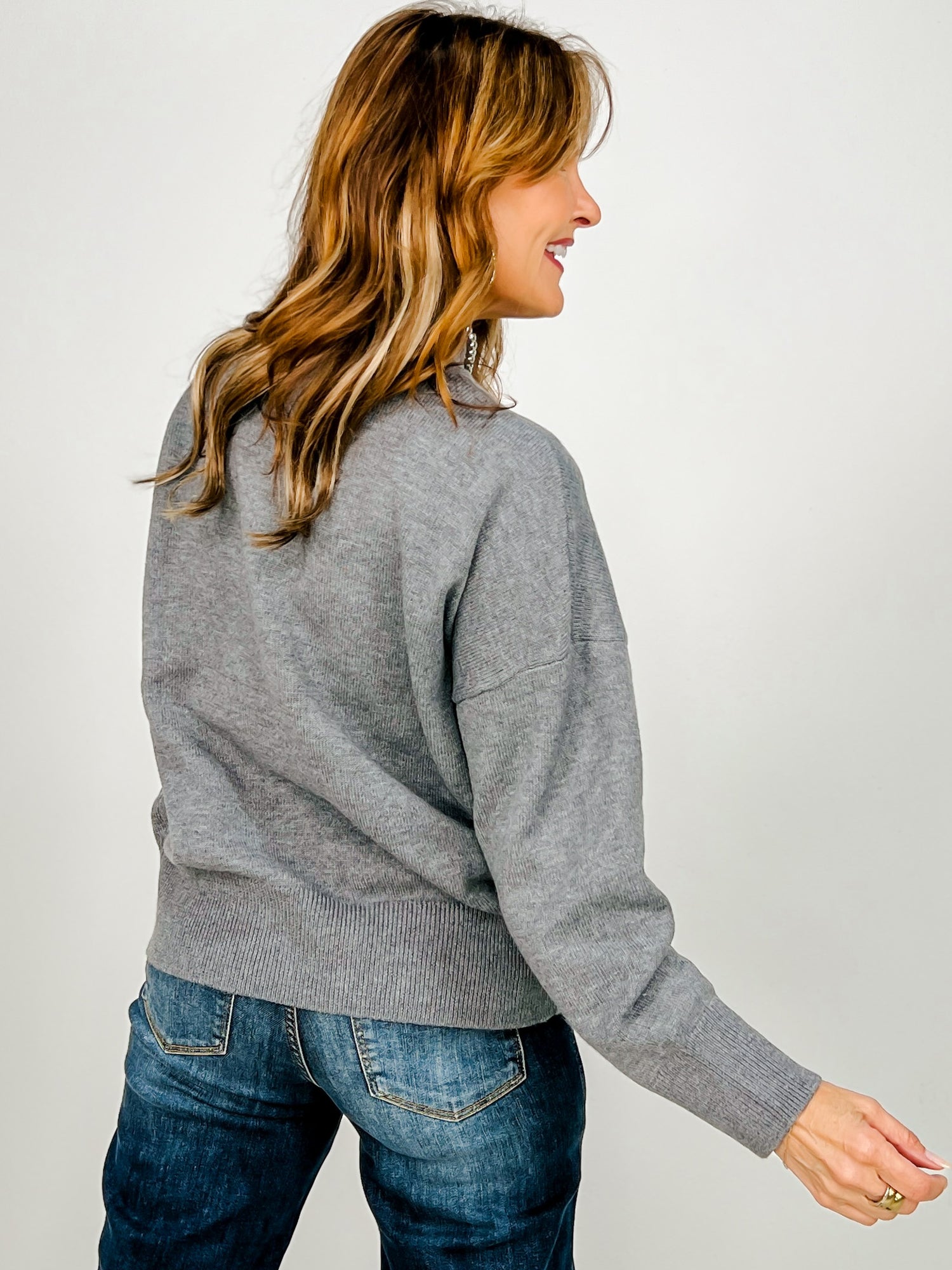 Front Seam Mock Neck Long Sleeve Knit Sweater -GROUP A
