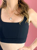 Get Up Nylon Rib Square Neck Sports Bra in Black
