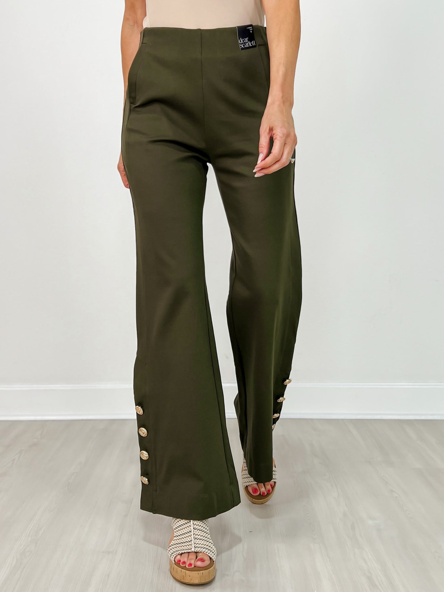 Gold Button Hem Gala Pants with Side Pockets in Olive