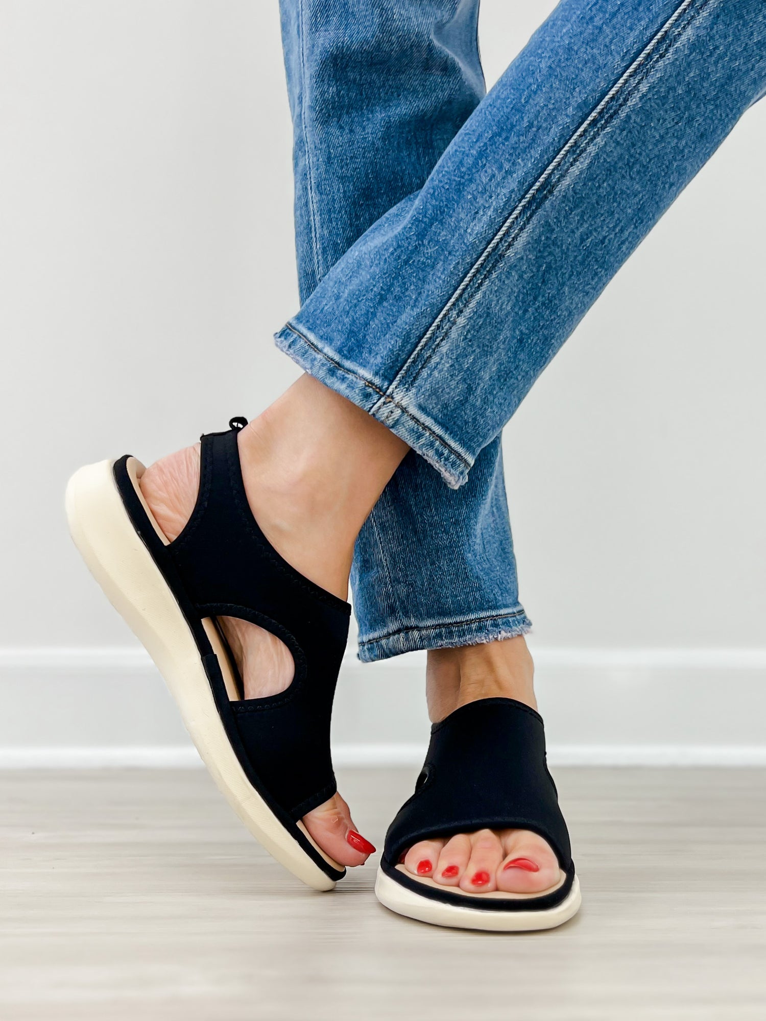 Good Choice Romy Stretch Lycra Wedge Sandals in Black