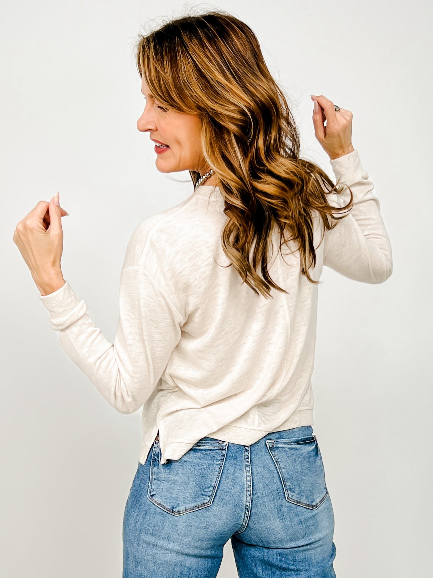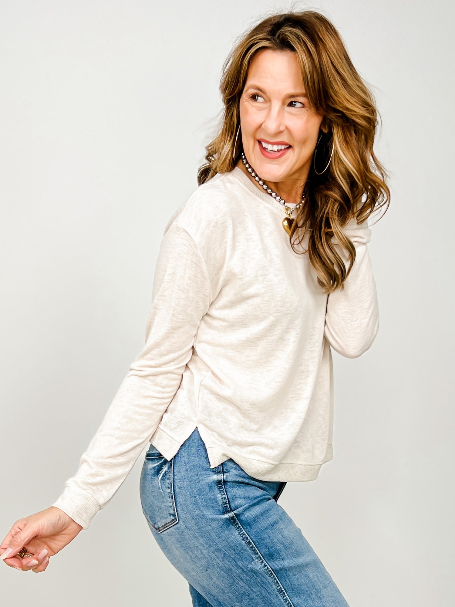 [message]Cozy up in this charming Hacci Slub Crew Neck Long Sleeve Top, where comfort meets style! The soft, textured fabric feels fantastic against your skin, while the classic crew neckline keeps things timeless. Ribbed detailing along the cuffs and hem adds a polished touch that elevates your everyday look. Perfect for layering or wearing solo, this versatile piece transitions seamlessly from casual coffee runs to relaxed weekend hangouts. A wardrobe essential that's as fun to wear as it is flattering!
