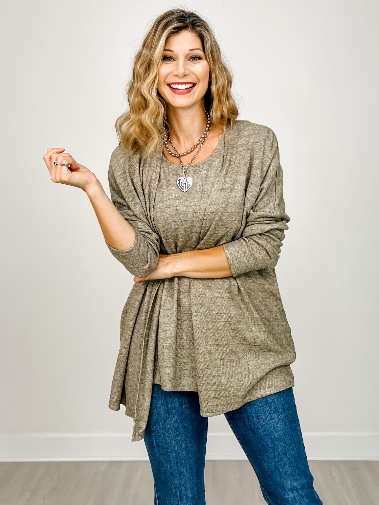 Effortless layering meets timeless style with this charming two-piece set. The sleeveless hacci-knit top features classic stripes that pair perfectly with the coordinating cardigan, giving you endless outfit possibilities. Throw it on for a polished look that transitions seamlessly from day to night. Whether you're dressing it up or keeping it casual, this versatile duo delivers comfort and sophistication in one delightful package.