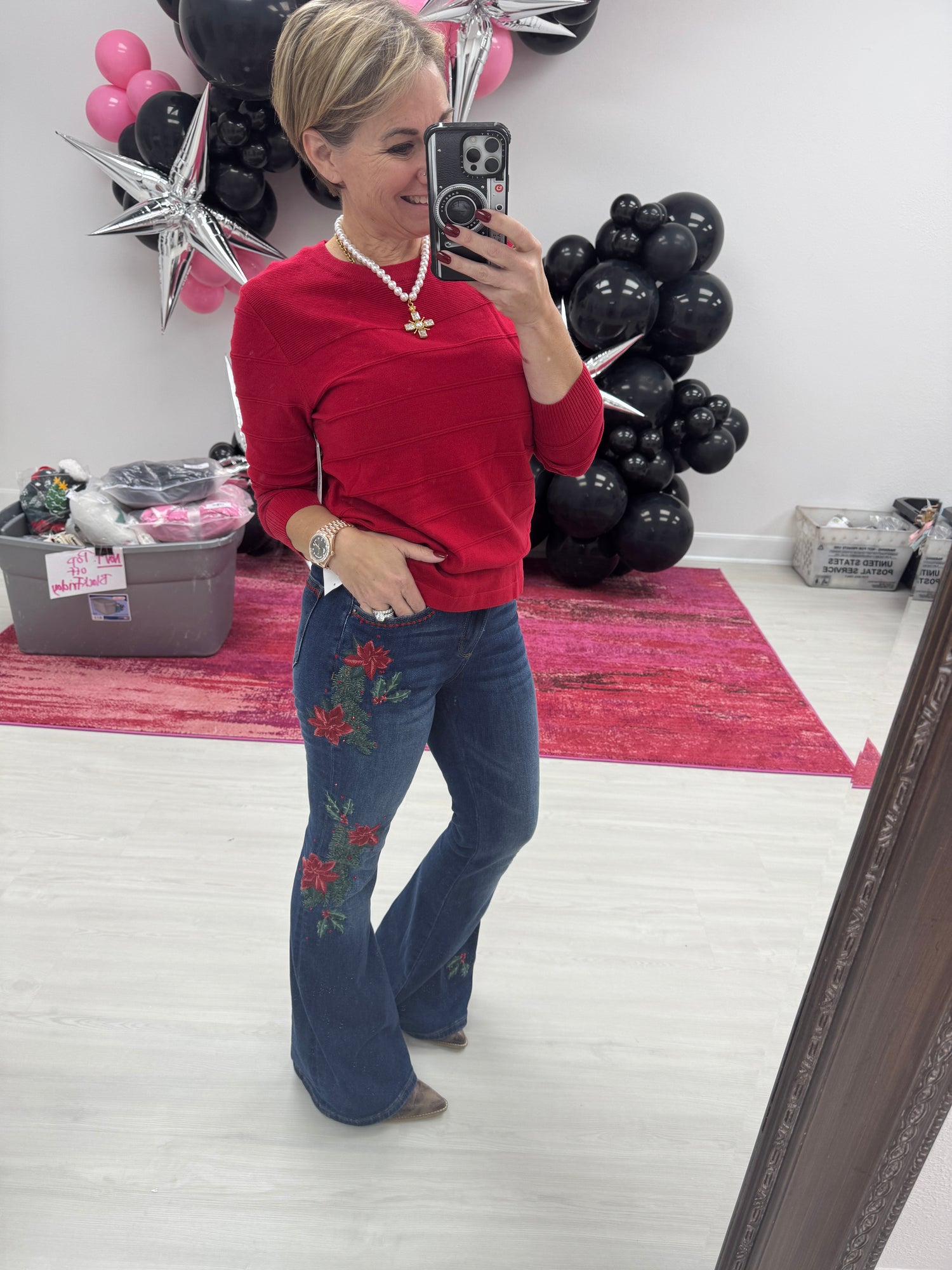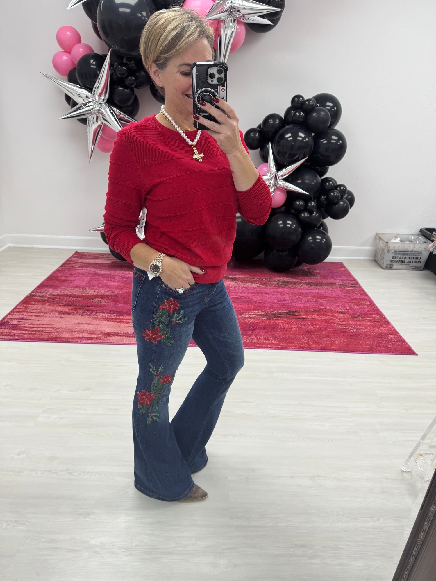 High-low frayed hem and dreamy ombré pointsetta embroidery, perfect for embracing a laid-back, standout style.
