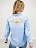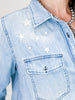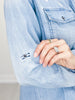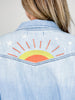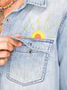 Hello Sunshine Embroidered Denim Button Down Collared Top