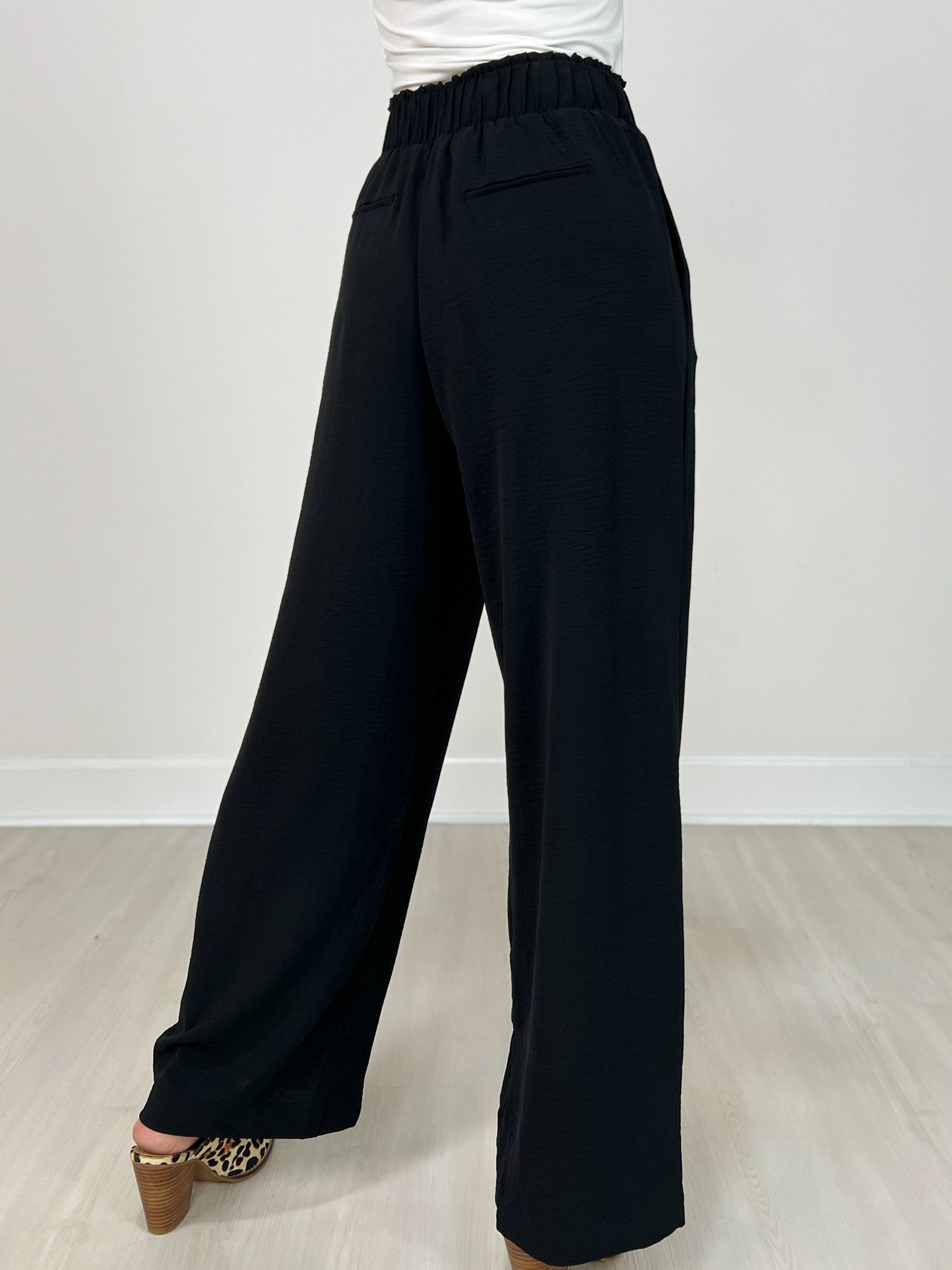 These Black Wide-Leg Pull-on Pants deliver effortless style and comfort. Designed with a relaxed, flowy silhouette and an elastic waistband, they offer an easy, flattering fit. The lightweight, drapey fabric moves beautifully, making them perfect for dressing up with heels or keeping casual with flats or sneakers.