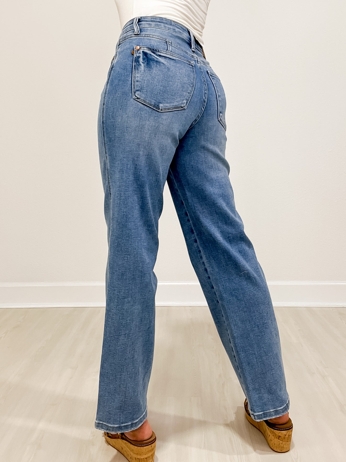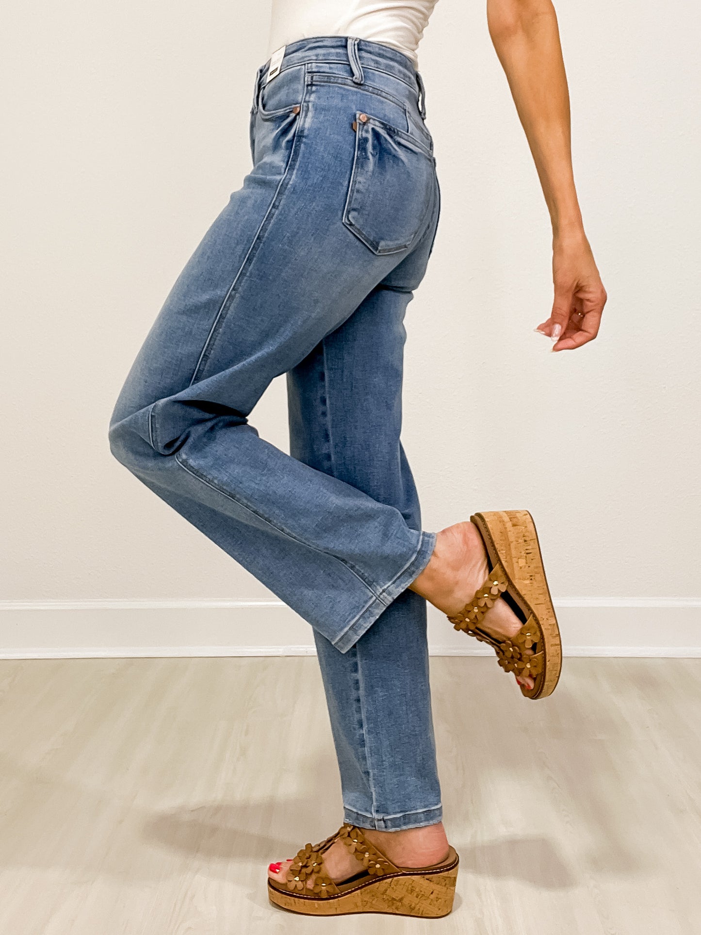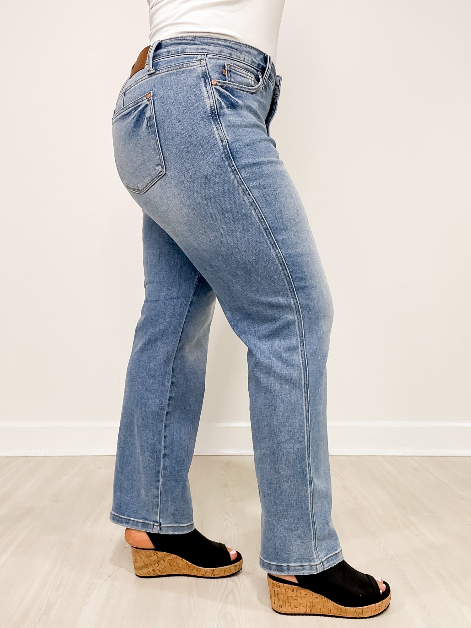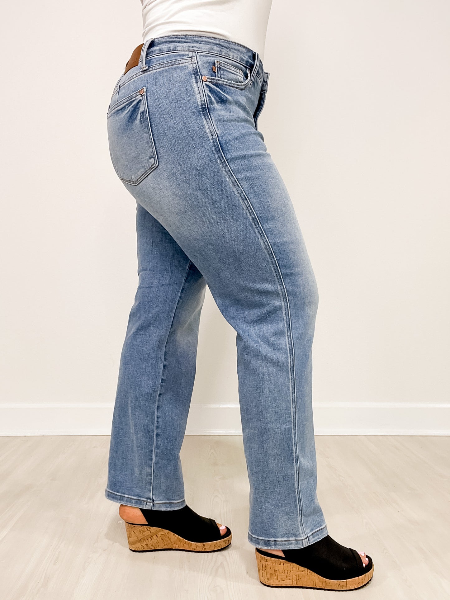 Judy Blue BLUE JEAN BABY Mid-Rise Tummy Control Straight Jeans