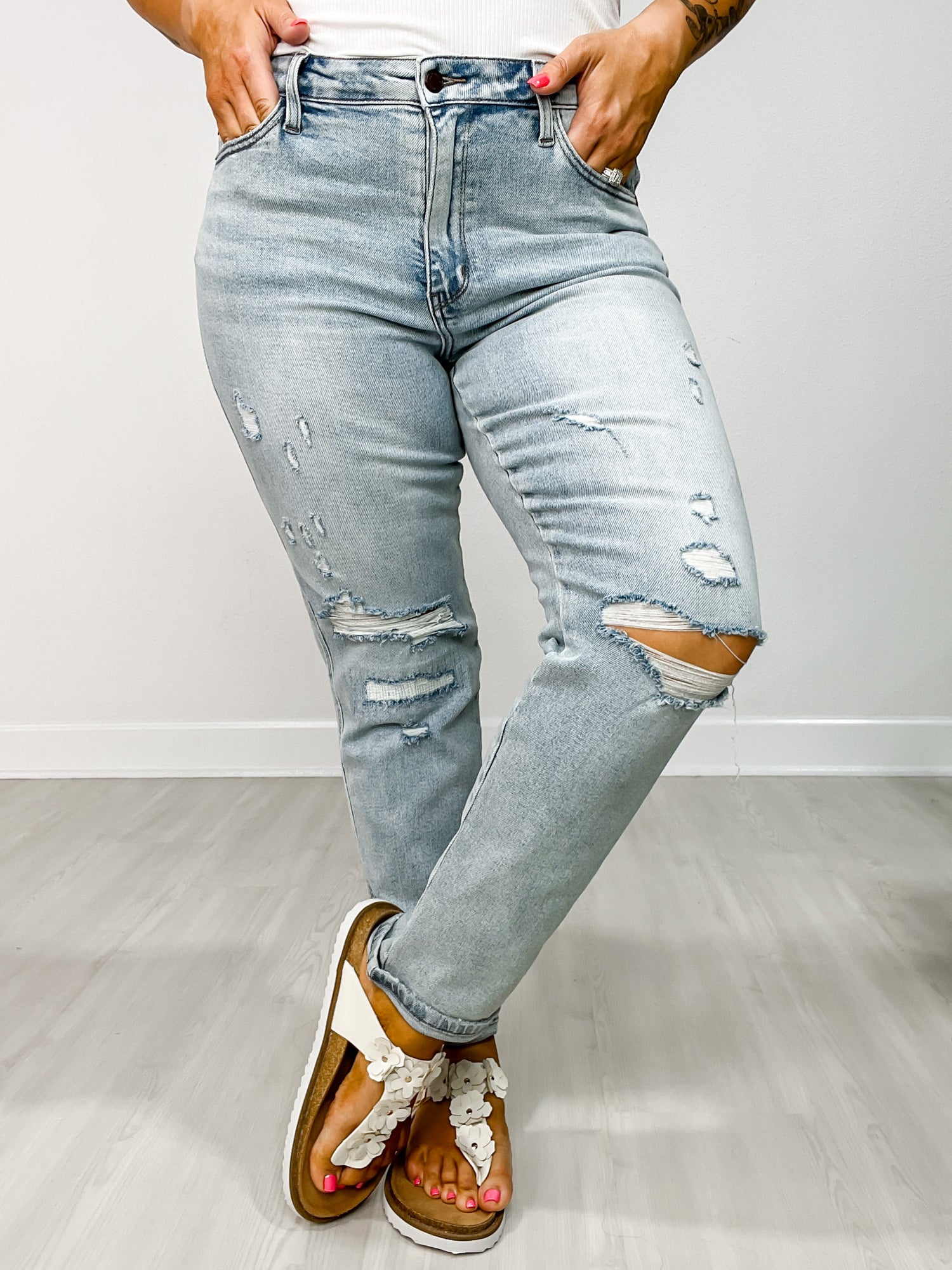 [message]Go where the vibe takes you in the Judy Blue DRIFTER Boyfriend Jeans. These mid-rise beauties feature Judy Blue's signature stretch for all-day comfort and a relaxed boyfriend fit that’s effortlessly cool. The contrast stitching details add just the right amount of standout flair, while the single cuffed hem gives a laid-back, lived-in look. Perfect for pairing with everything from graphic tees to flowy blouses, these jeans are made for everyday adventures.