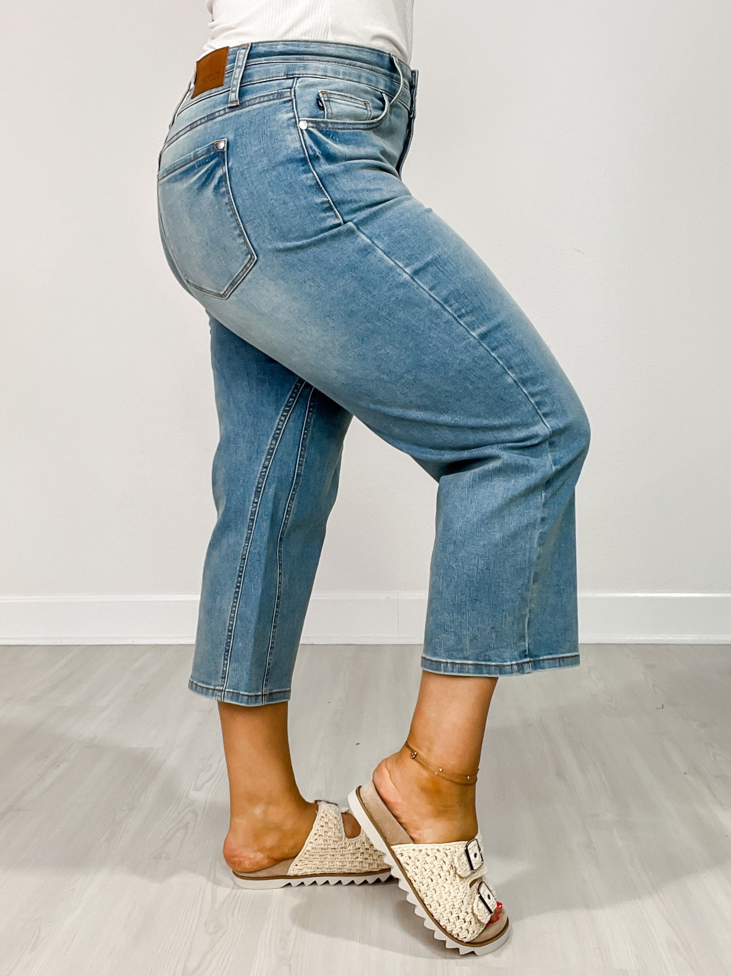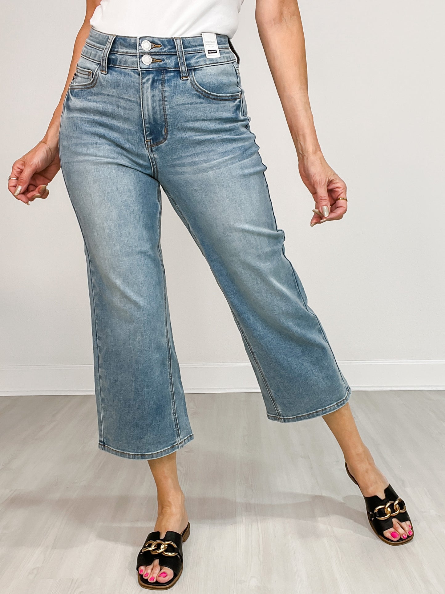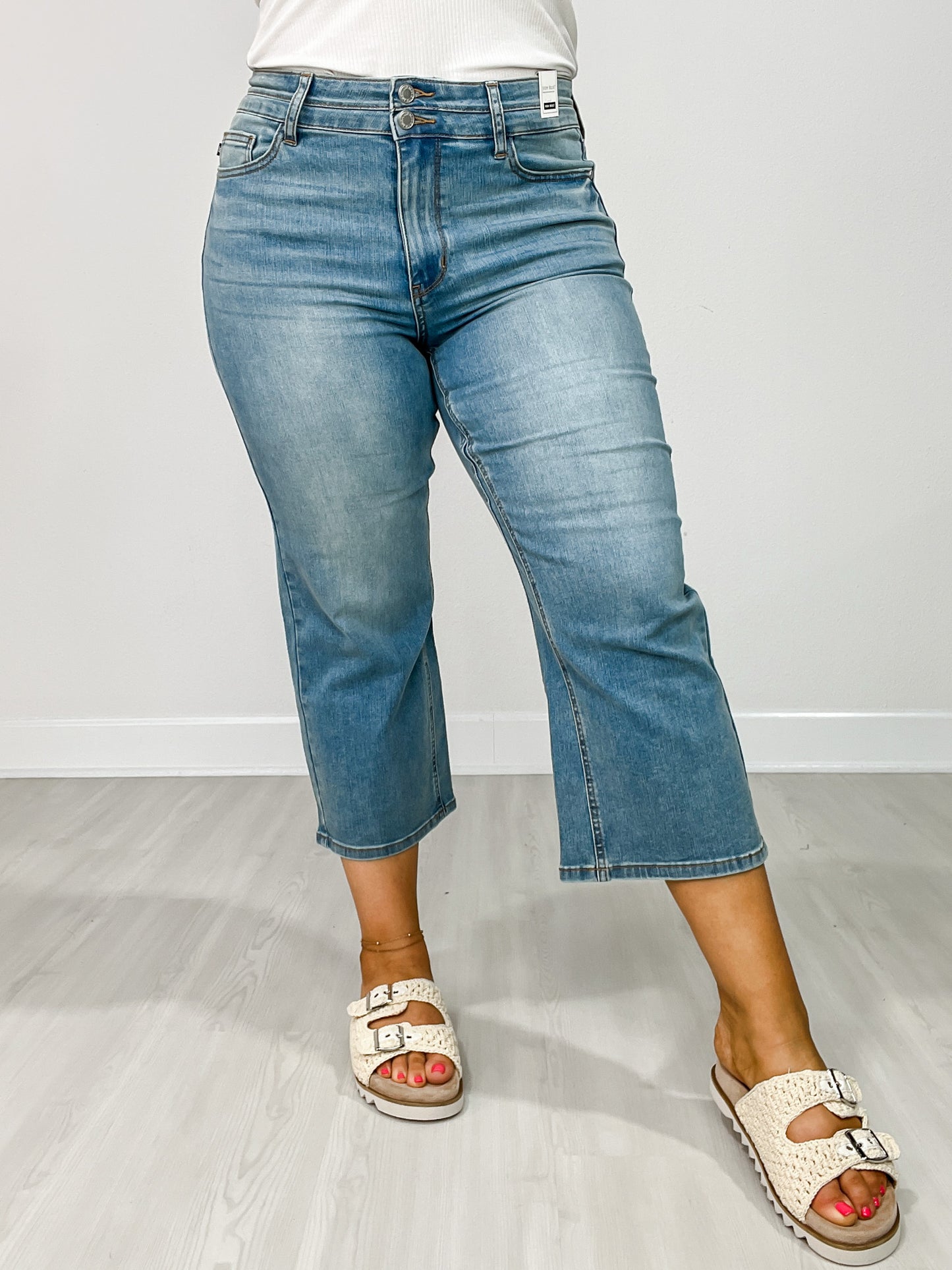 Judy Blue EDEN Hi-Rise Double Waistband Crop Wide Leg Denim Jeans