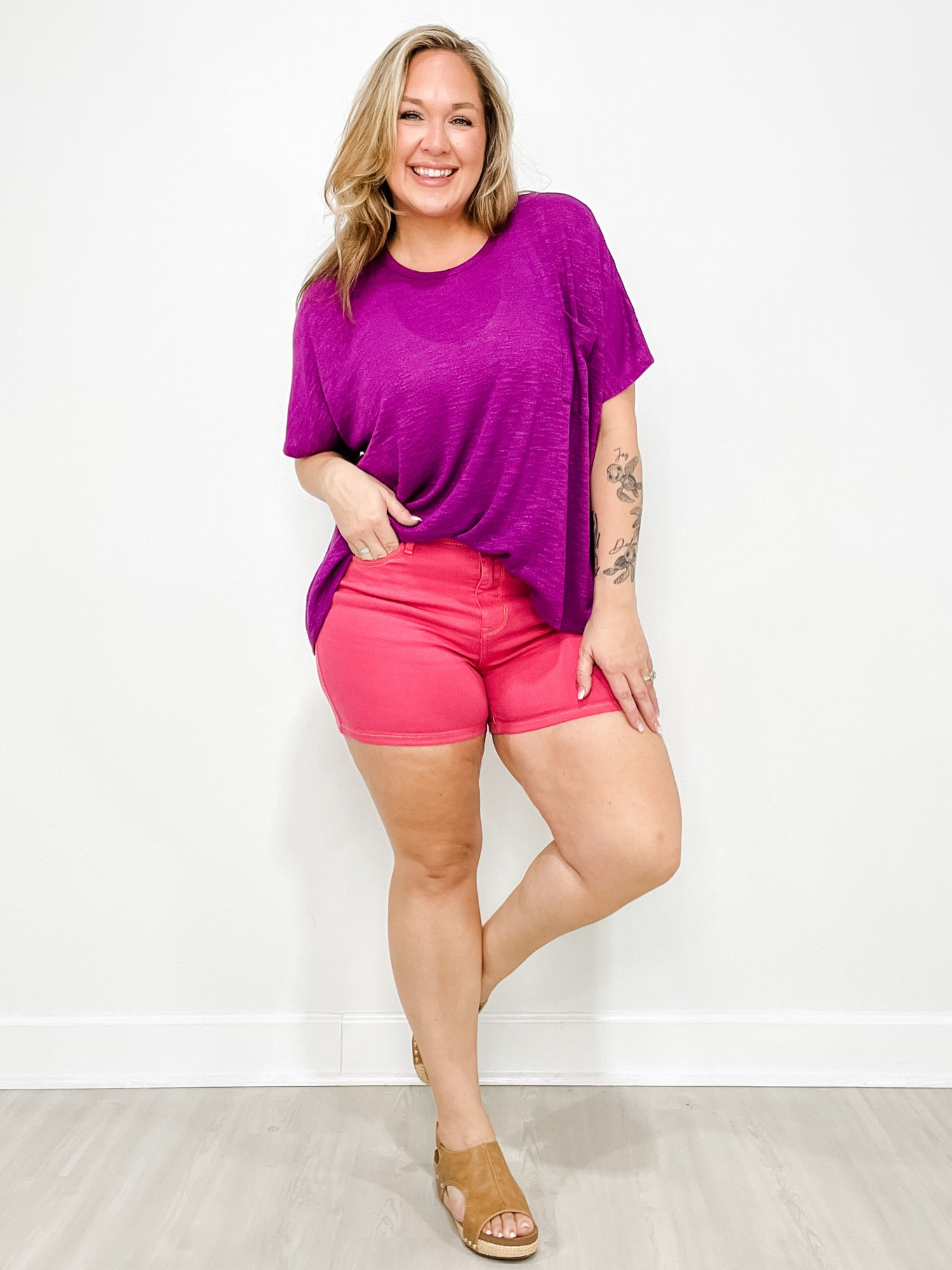 Judy Blue Hi-Rise Garment Dyed Magenta Shorts