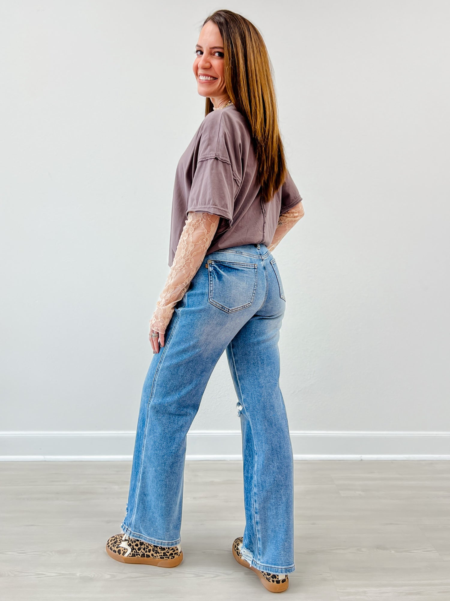 Judy Blue OASIS Mid-Rise 90's Straight Rigid Magic Distressed Jeans