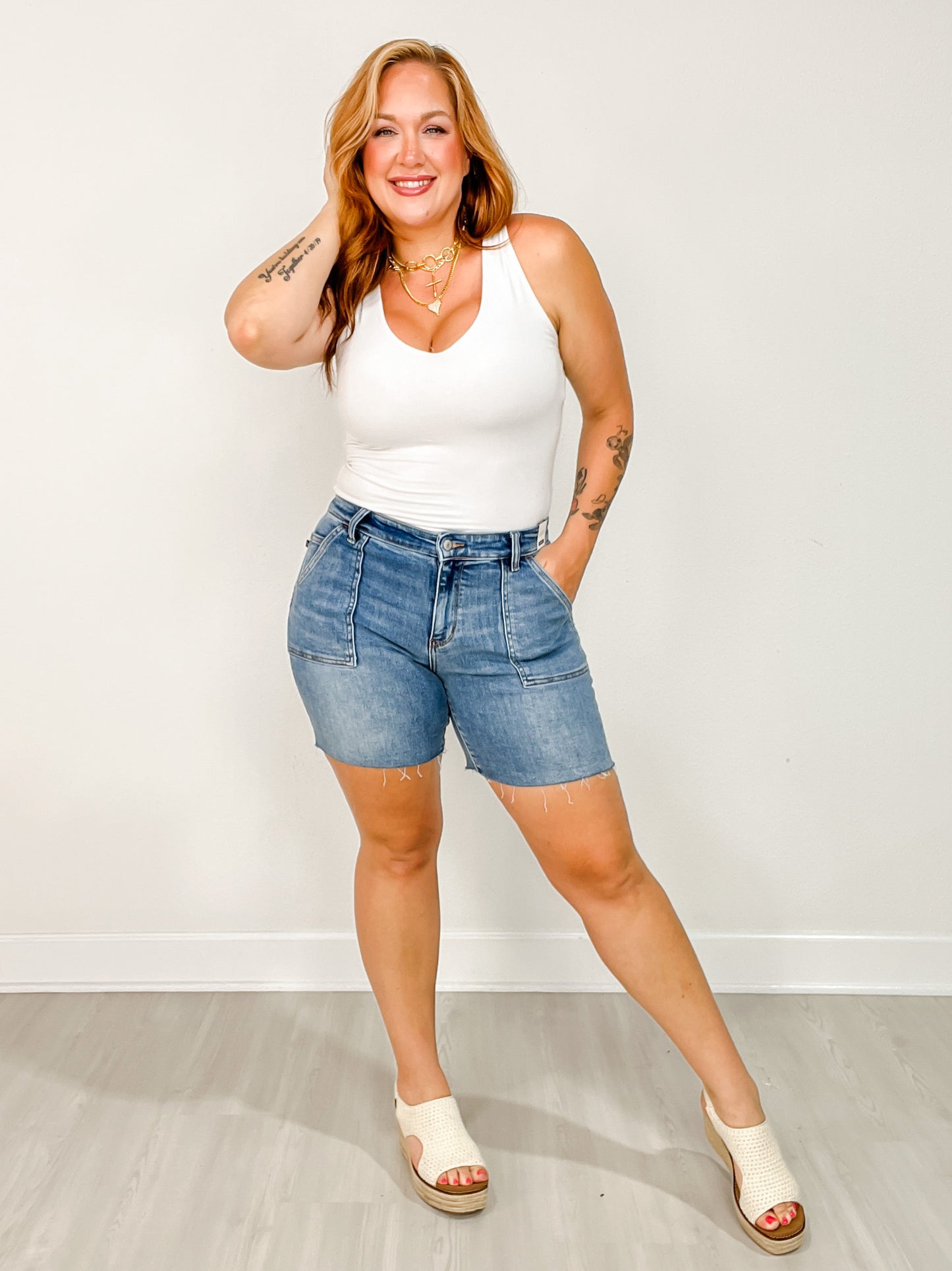 The Judy Blue STAR STRUCK Mid-Rise Bermuda Jean Shorts are your perfect summer staple. With a comfortable mid-rise fit, these shorts give you a laid-back vibe while still being stylish. The Bermuda length is excellent for keeping cool, and the back flap pockets add a fun twist to the classic denim look. These shorts are made with soft, stretchy fabric and ensure you feel great all day, whether at a BBQ or just hanging out with friends. Pair them with a casual tee or a cute tank, and you’re all set for any sunny day adventure!