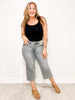 Introducing Judy Blue TANNER Mid-Rise Jeans - the perfect combination of style and comfort! This pair features a tummy control design for a flattering fit, raw hem for a trendy touch, and a cropped wide leg for a chic look. Elevate your wardrobe and feel confident in these jeans all day long!