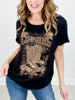 Make a statement in this cowgirl-inspired bling top. Perfect for the rodeo or nights out with the girls. Pair with your favorite pair of boots and denim for the perfect outfit!