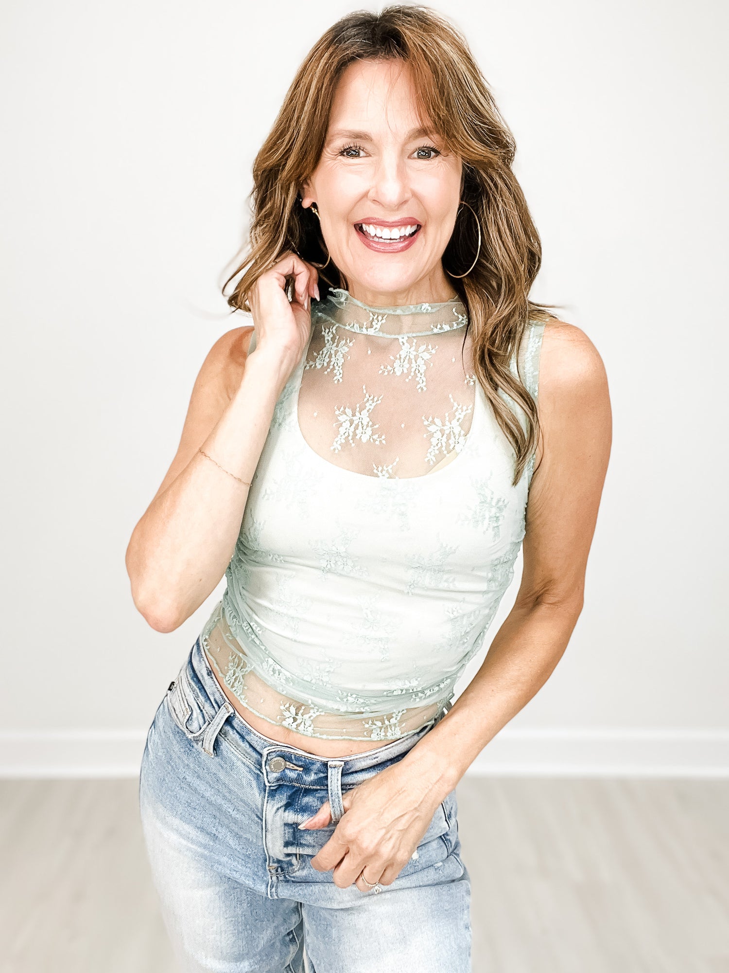 Lace Sleeveless See Through Top