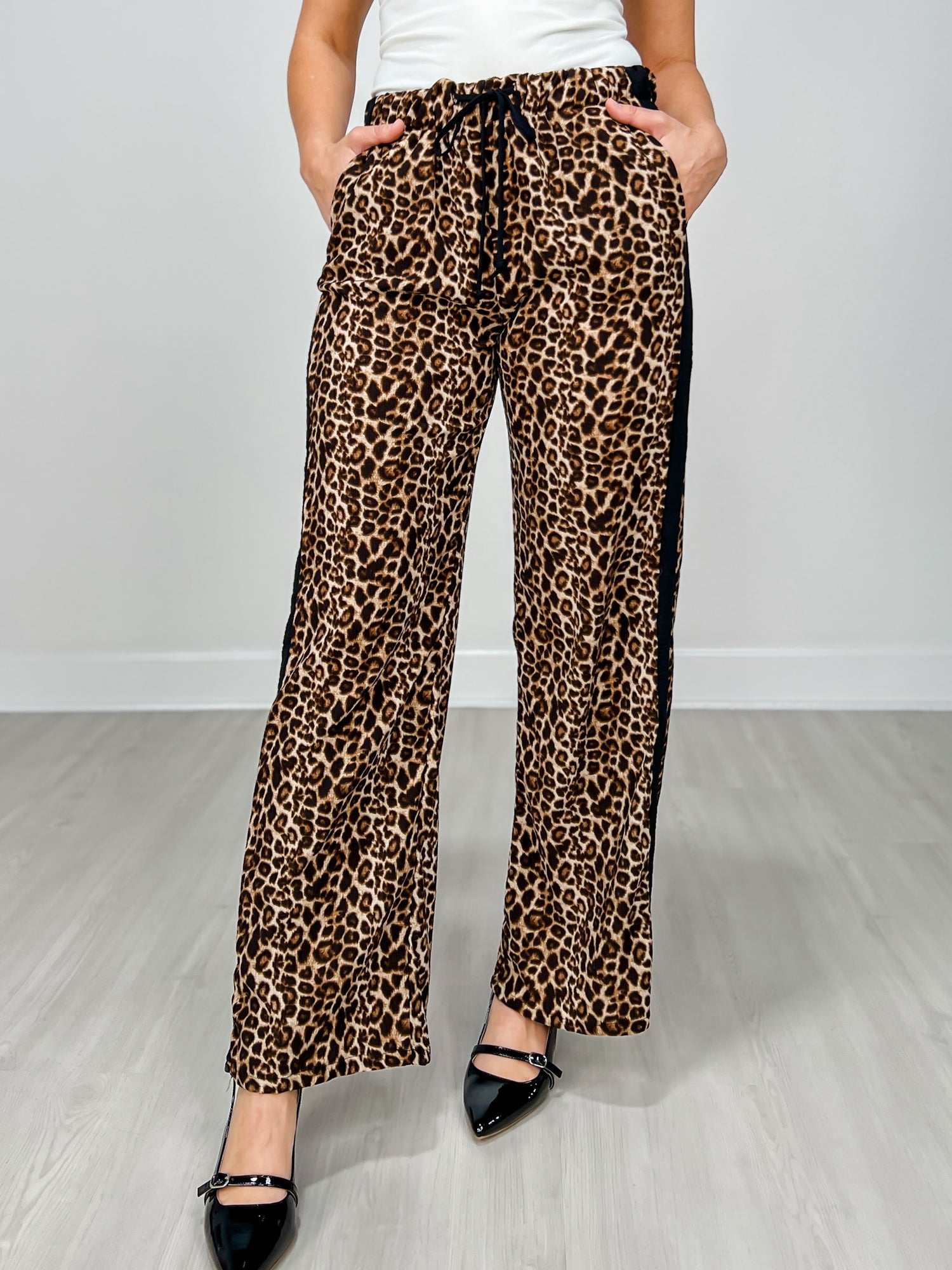 Make a bold statement with these leopard print wide leg pants that blend wild style with everyday wearability. The flattering high-rise silhouette and flowing legs create an effortlessly chic look, while functional pockets keep your essentials close. Perfect for dressing up or down, these pants bring a touch of untamed glamour to any outfit. Whether you're channeling retro vibes or modern edge, this print-forward piece proves that fashion should always be fun.