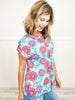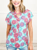 Lizzy Vacation Short Sleeve Top in Teal Multi