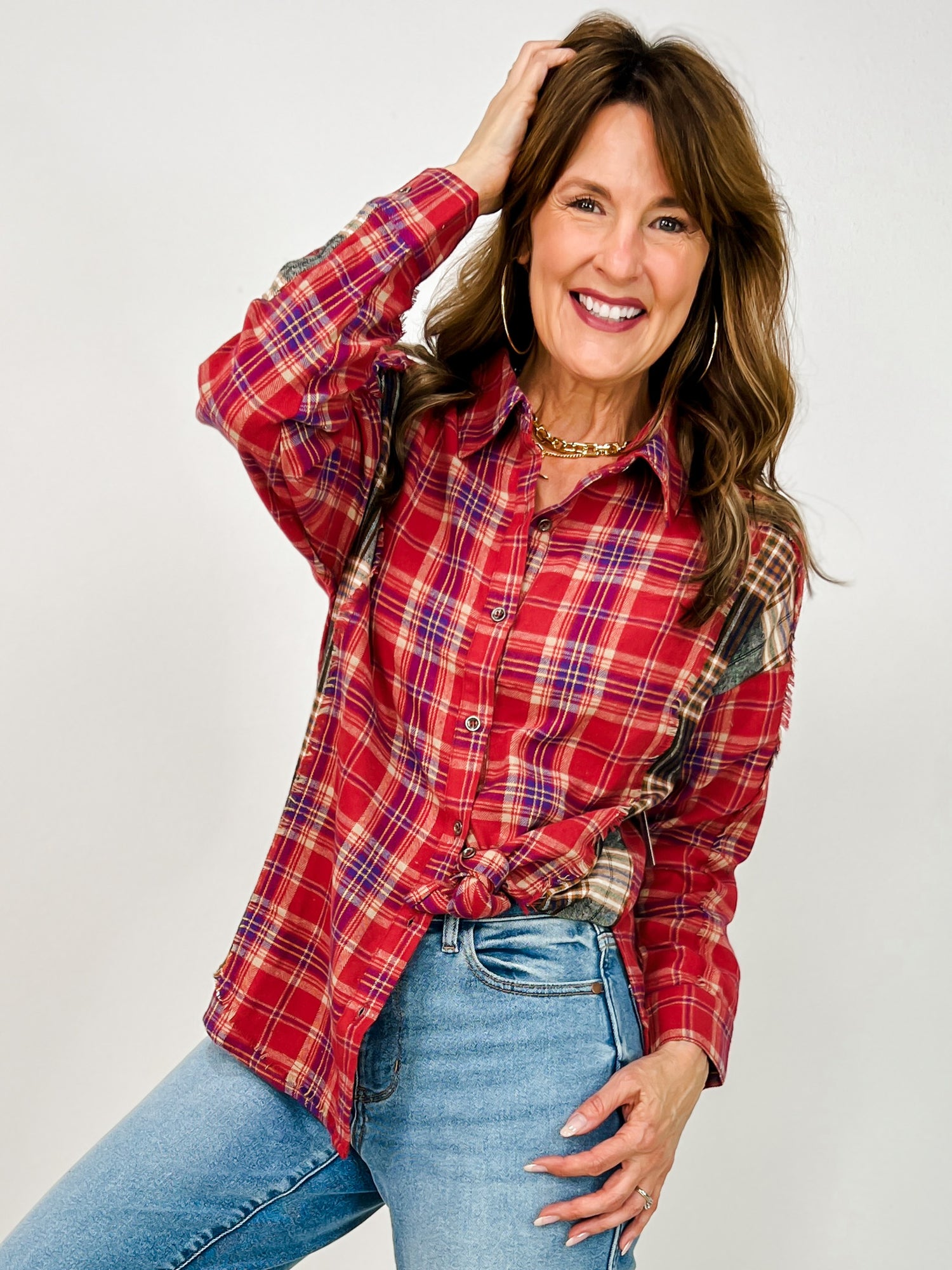 Add a splash of fun to your wardrobe with this playful, long-sleeved, button-down, collared Plaid Top. Perfectly combining classic plaid with a modern fit, it’s your go-to for layering or wearing solo. The button-down front and crisp collar add a touch of charm, while the long sleeves keep things cozy and stylish for any occasion.